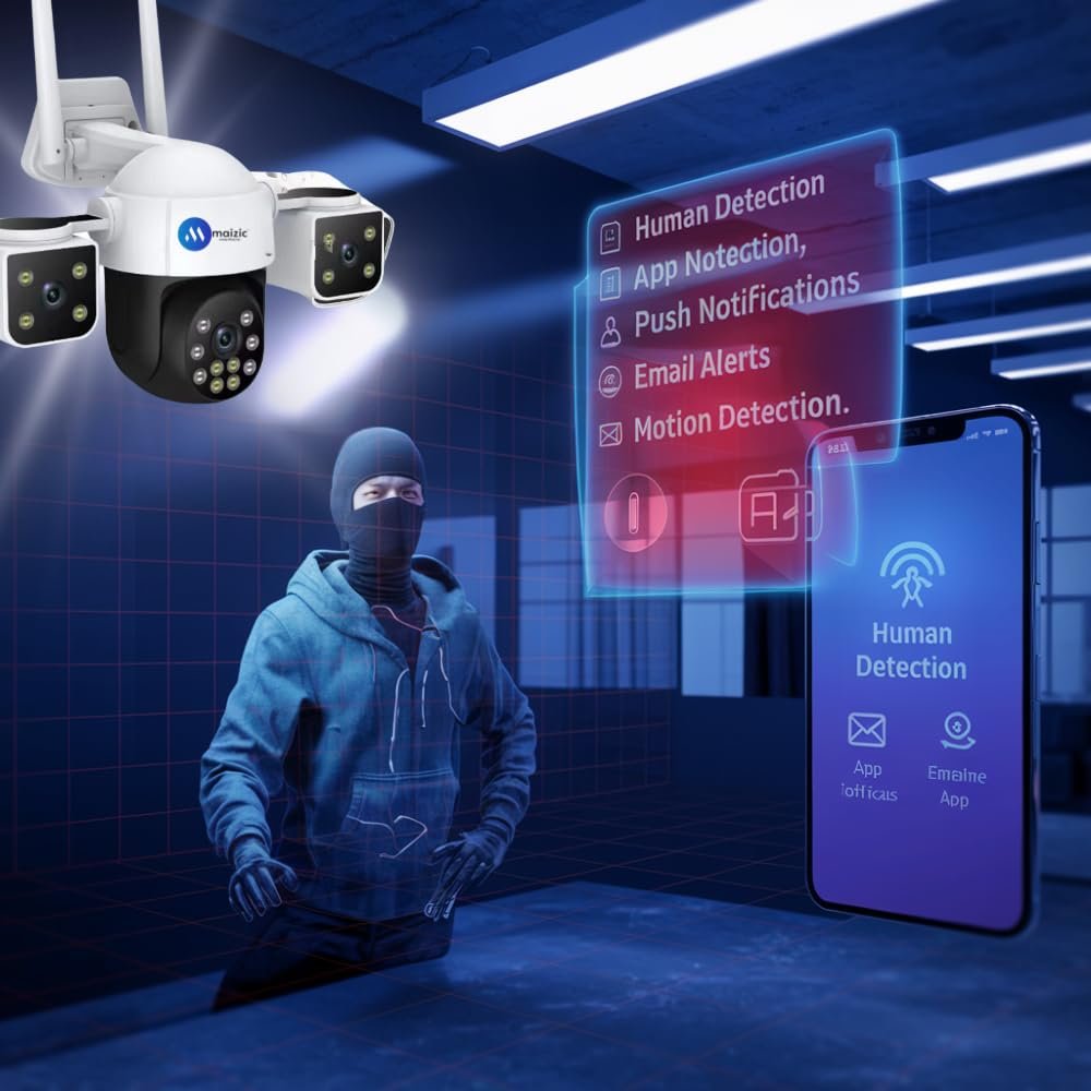 Maizic Smarthome Batman 4G Sim Based 6MP HD 3in1 Screen View CCTV Camera, Outdoor Indoor Home Security Camera, 2 Way Talk, Motion Detection, Color Night Vision, 2 Side Camera Horizontally Rotate 180°