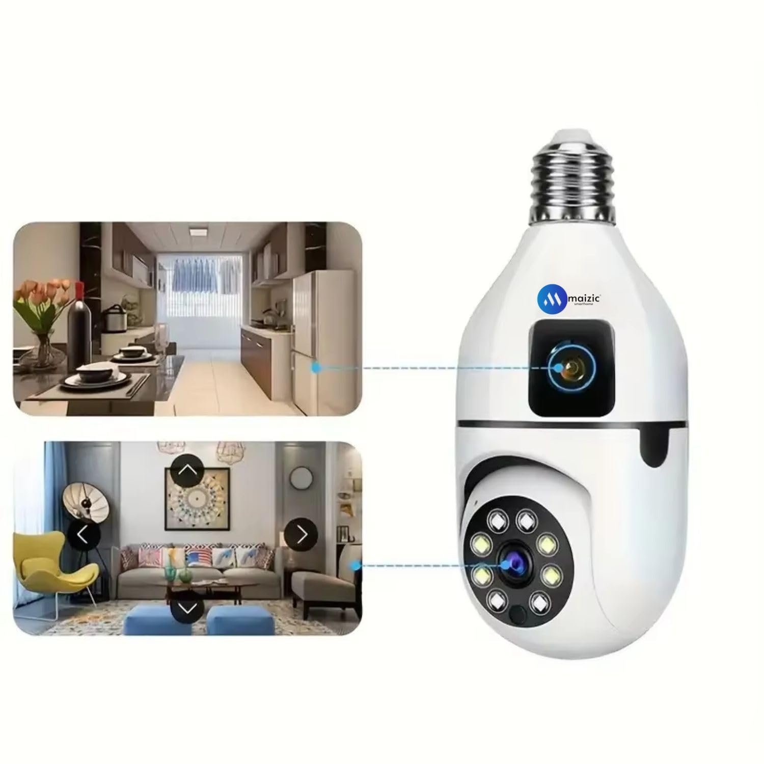 Maizic Smarthome Supercams 3MP WiFi CCTV Camera 2-in-1 Dual Lens Bulb Camera Live View, Bullet+PTZ Control, Two Way Audio,Color Night Vision, AI Human Detection for Indoor Camera