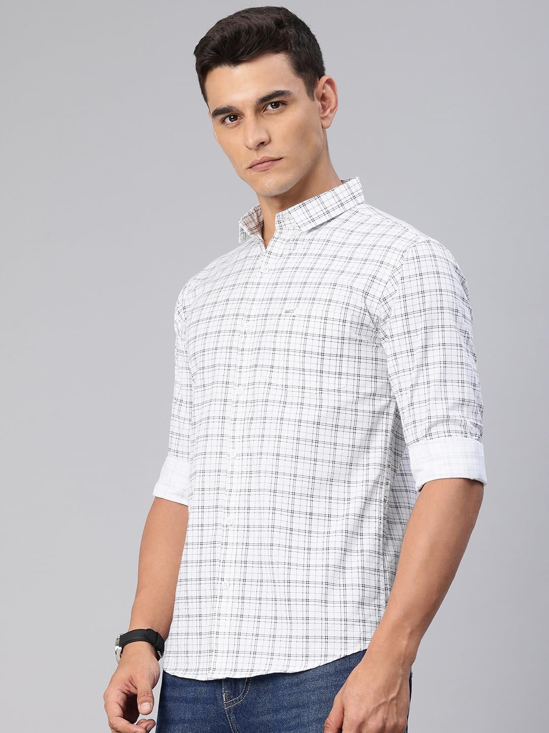 Majestic Man Comfort Slim Fit Spread Collar Small Checked Cotton Casual Shirt