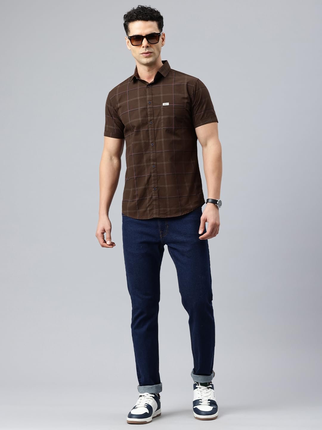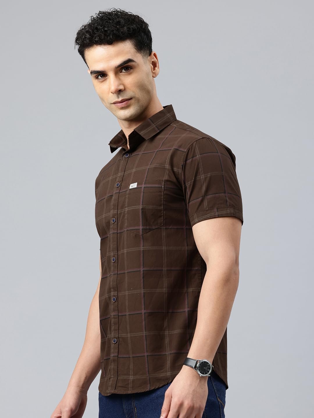 Majestic Man Men Comfort Slim Fit Checked Pure Cotton Half Sleeve Casual Shirt