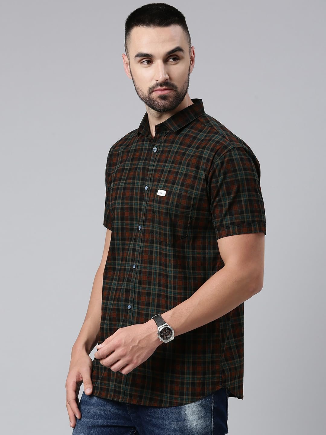 Majestic Man Men Cotton Checkered Half Sleeve Slim Fit Casual Shirt