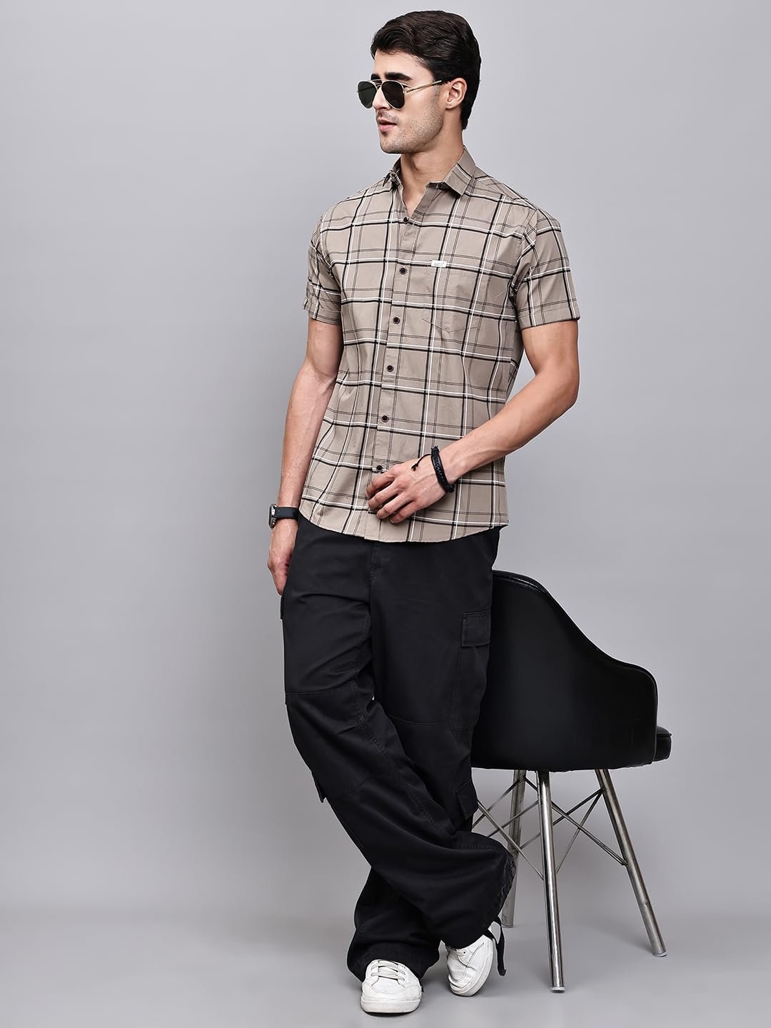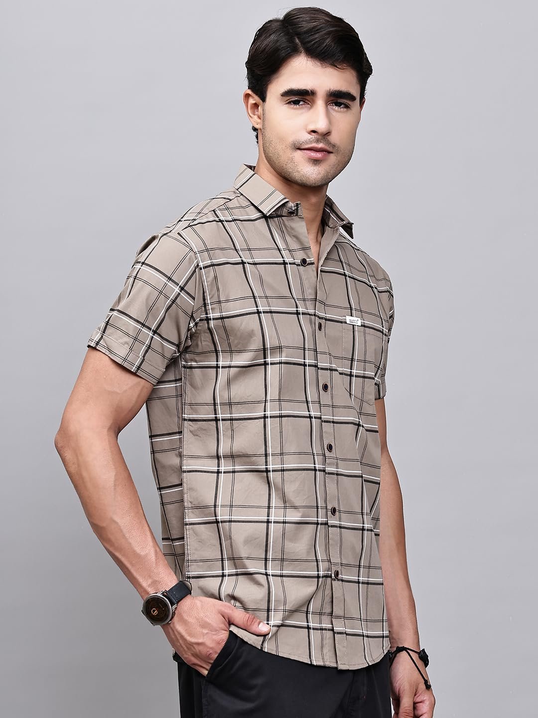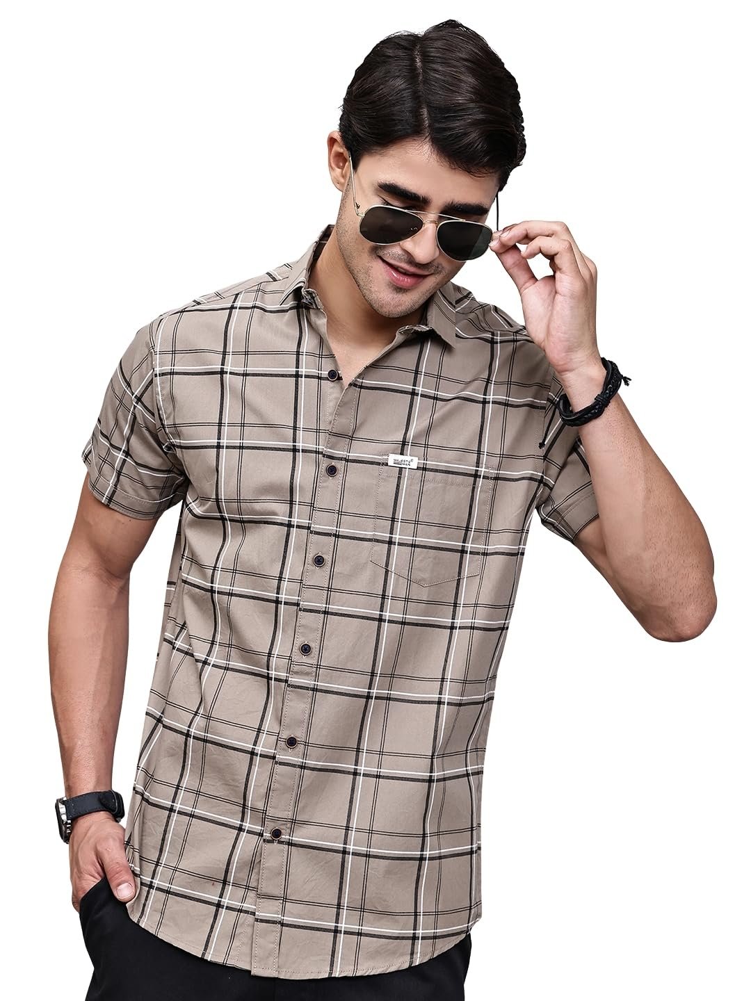 Majestic Man Slim Fit Pure Cotton Half Sleeve Checked Casual Shirt