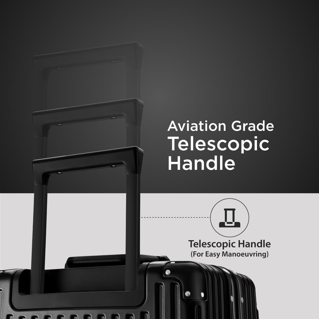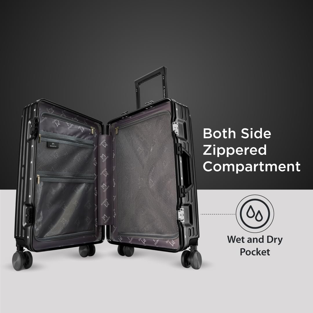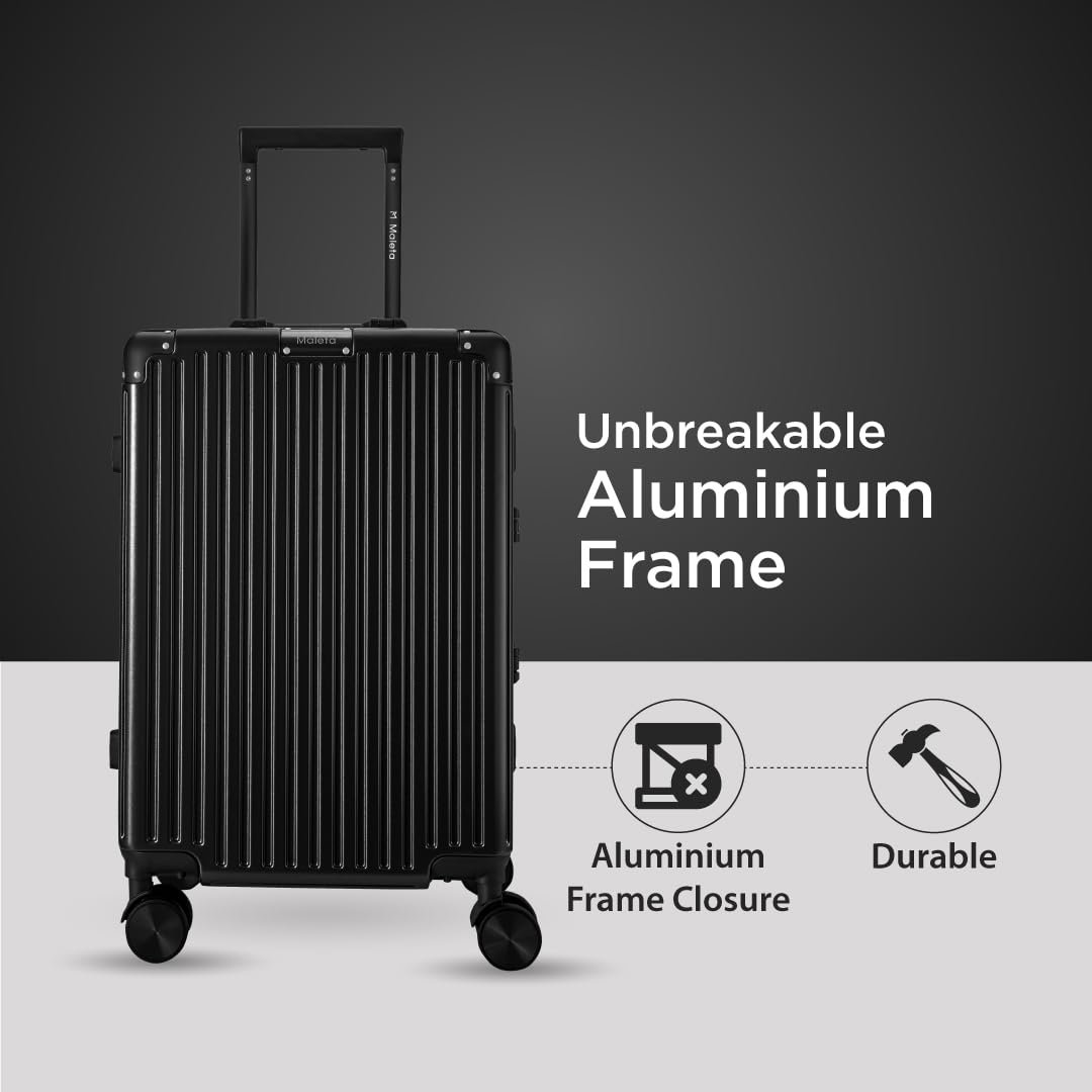 Maleta Crown Series Set of 2 | Check-in Medium+Check-in Large |Aluminium Frame,8 Spinner Wheels,Premium Suitcase for Travel | Luggage | Trolley Bag for Travel (Black, Set of 2(Medium-Large))
