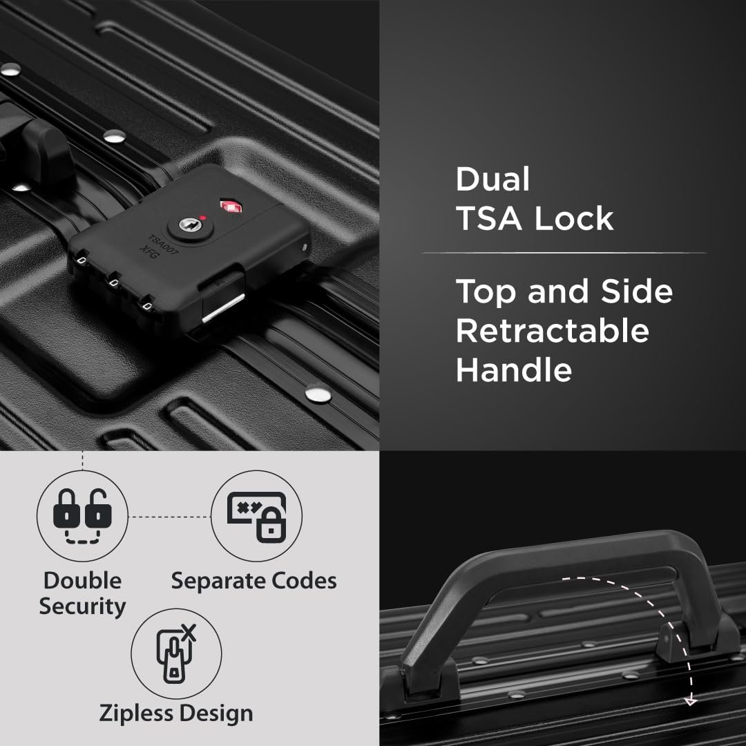 Durable Aluminium Build with Corner Protection: Crafted with a sturdy aluminium frame and reinforced corners to ensure your belongings stay safe from impacts and wear.
