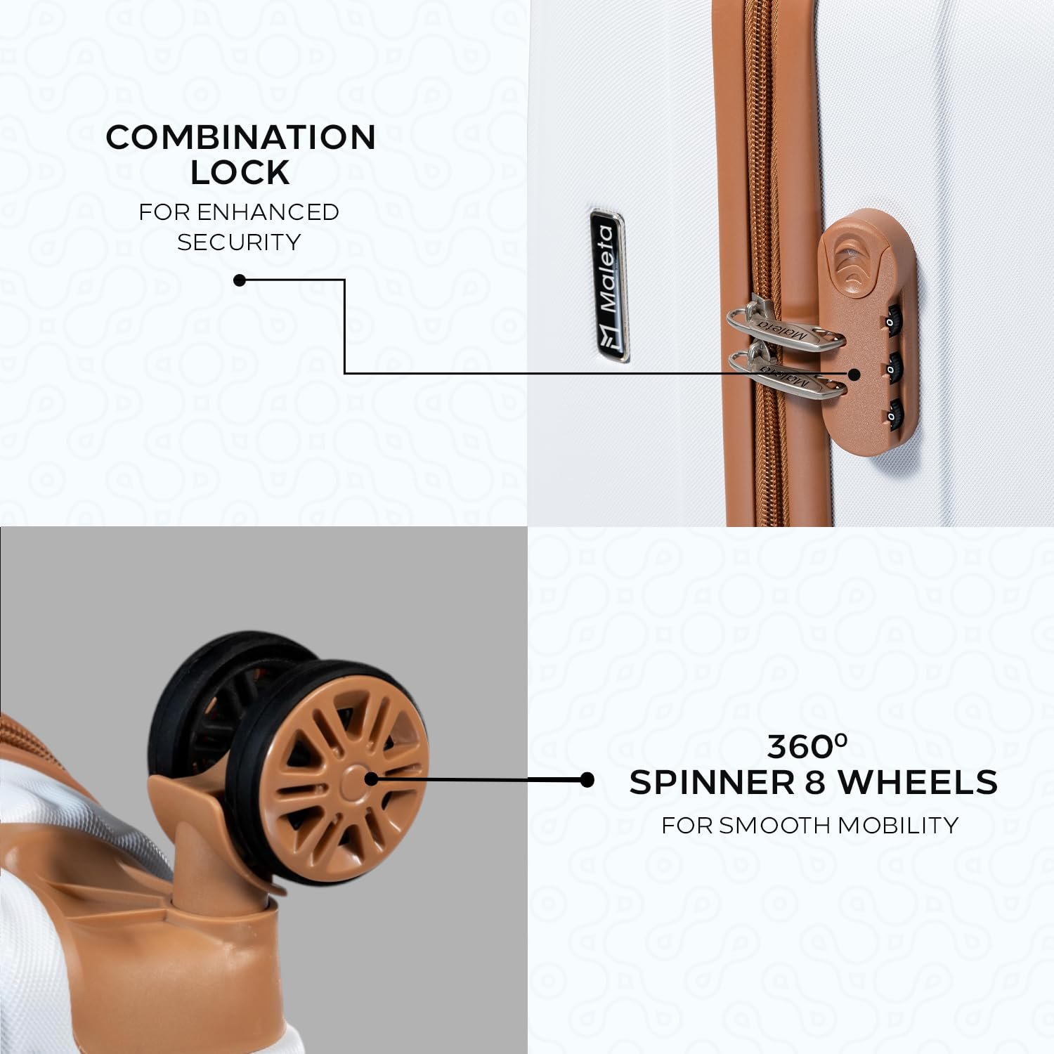 High-Quality Material and Security: Crafted from durable, lightweight ABS, our trolley bag is built to withstand impacts and resist wear and tear. Travel securely with a Combination lock and our innovative anti-theft zipper, designed to safeguard your valuables.