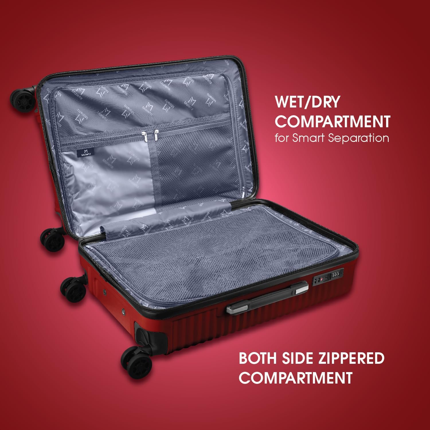 Maleta Tranquil Set of 3 | Small + Medium + Large Size | Premium Luggage, TSA Lock | Trolley Bags for Travel | Suitcase for Travel (Red, Set of 3 (Small-Medium-Large))