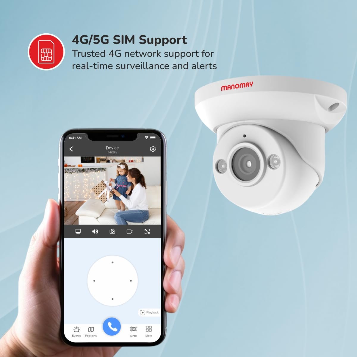 MANOMAY Protect Dot Security Camera 4G Sim 3mp CCTV Dome Camera | 4G Sim Based 3MP 1296p HD with IR LED