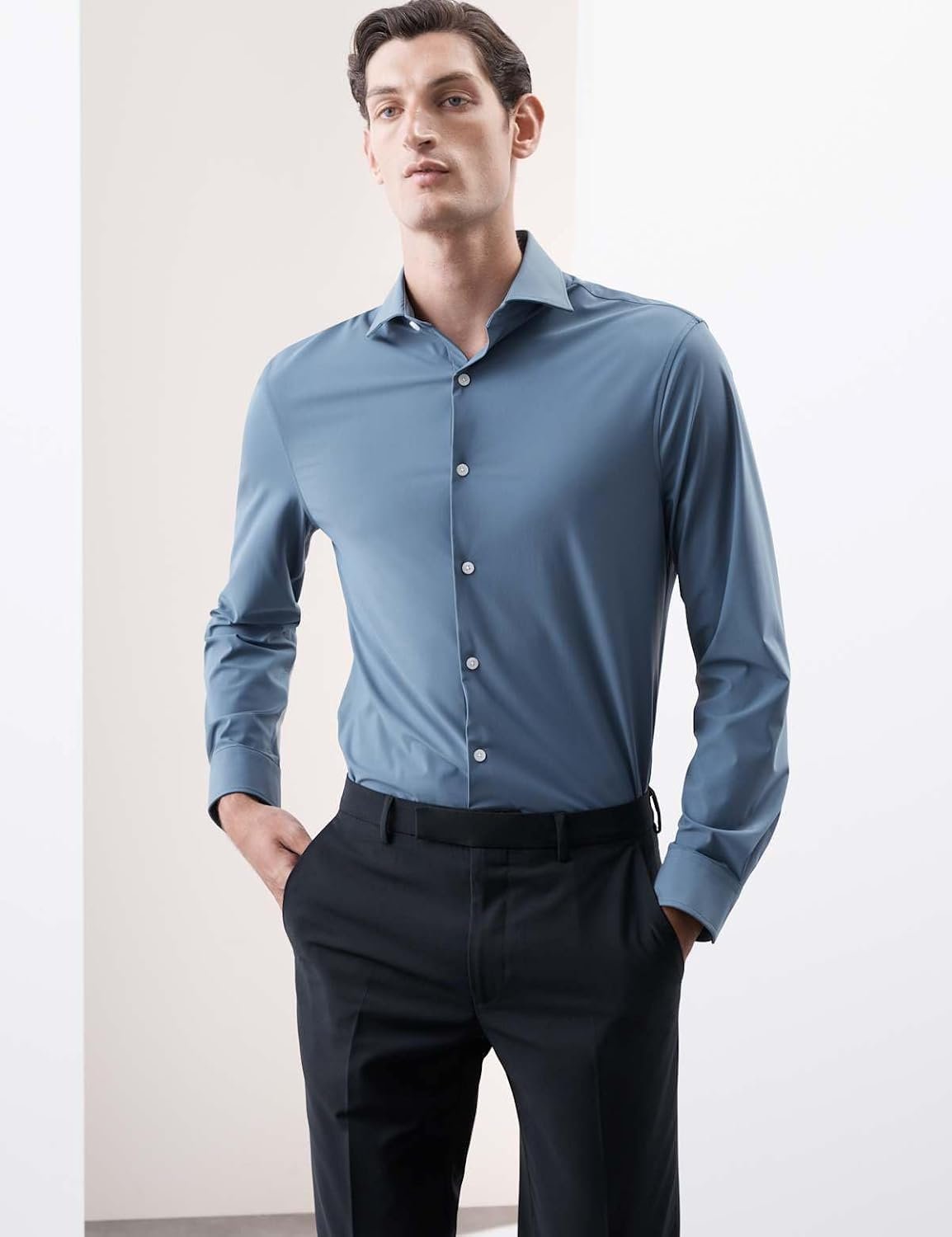 With its innovative four-way stretch fabric, this shirt from our Autograph collection provides great comfort without compromising on style. The sleek fit creates a flattering silhouette, while the neat cutaway collar adds a contemporary touch. Moisture-wicking technology keeps you fresh for all-day comfort. The easy-iron finish means you can achieve a crisp, professional look with minimal effort – just a quick press and you’re ready to go. Autograph: premium investment pieces featuring contemporary cuts and refined finishing touches.