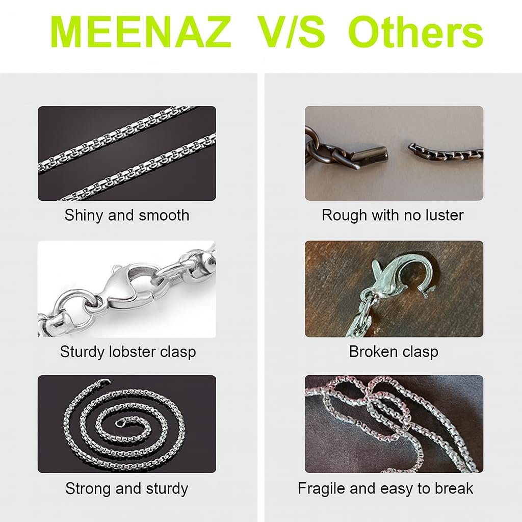 MEENAZMen chain stainless steel chain anti tarnish chain box chain silver necklace chain lightweight chain and stylish chain for men are among the most searched jewellery for men who prefer premium stainless steel jewellery a 2mm chain with a sleek polished silver finish works as a perfect men accessories piece for gym chain office chain or casual wear chain the hypoallergenic chain is safe for all skin types and designed for comfort durability and shine this tarnish resistant necklace adds a modern look that fits minimalist and classic style the polished silver chain suits party wear and daily use chain outfits while maintaining a bright mirror finish a premium men accessory like this box chain makes a thoughtful gift for men boyfriend husband or brother suitable for birthday gift men anniversary gift men or valentine gift men this men fashion jewellery stands out as a durable metal chain that stays non fading and elegant crafted as a trendy men necklace and stylish silver chain it complements every outfit from traditional to modern look