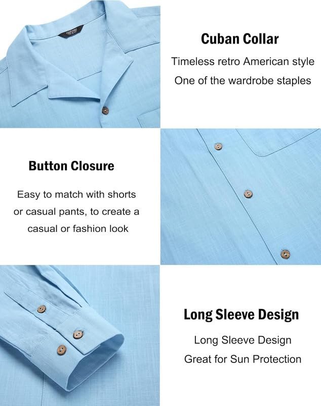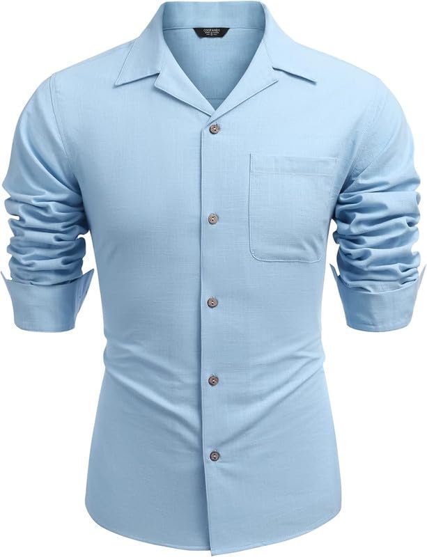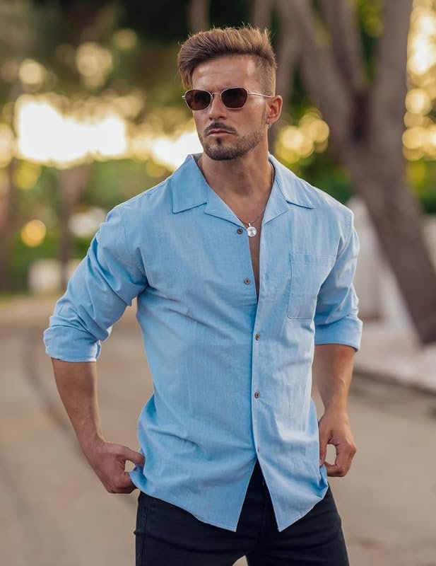 Men’s Casual Cotton Blend Shirt || Long Sleeve Button Down with Spread Collar || Lightweight Breathable Fabric || Stylish Solid Color Shirt for Beach, Office & Everyday Wear