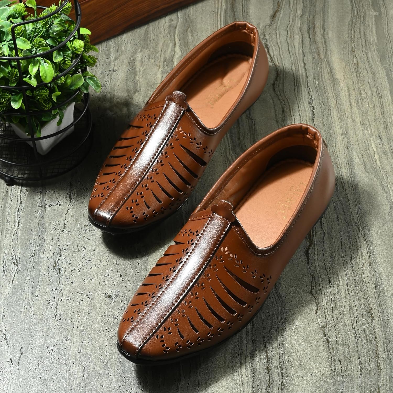 Men’s Laser-Cut Comfort Faux Leather Look Stylish Mule for Kurta Pajama/Stylish Designer Kurta Set