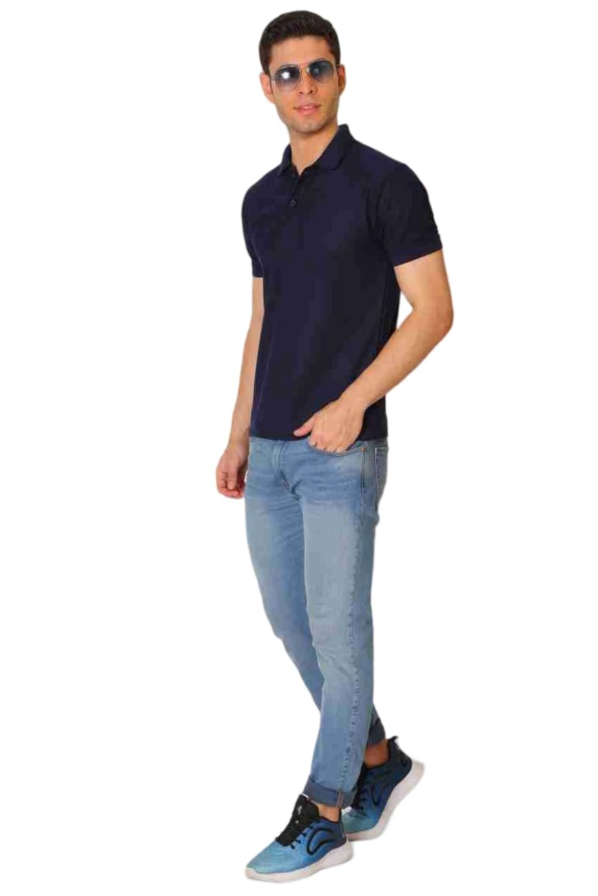 Men’s Solid Fit Cotton T Shirt | Collar Tshirts | Half Sleeves | Plain-Regular Fit (Jet Blue_M) (Available in Plus Size)