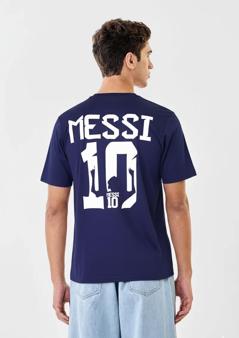 Messi Navy Blue Cotton T-Shirt, Men’s Casual Round Neck Short Sleeve Top, Sports Lifestyle Wear