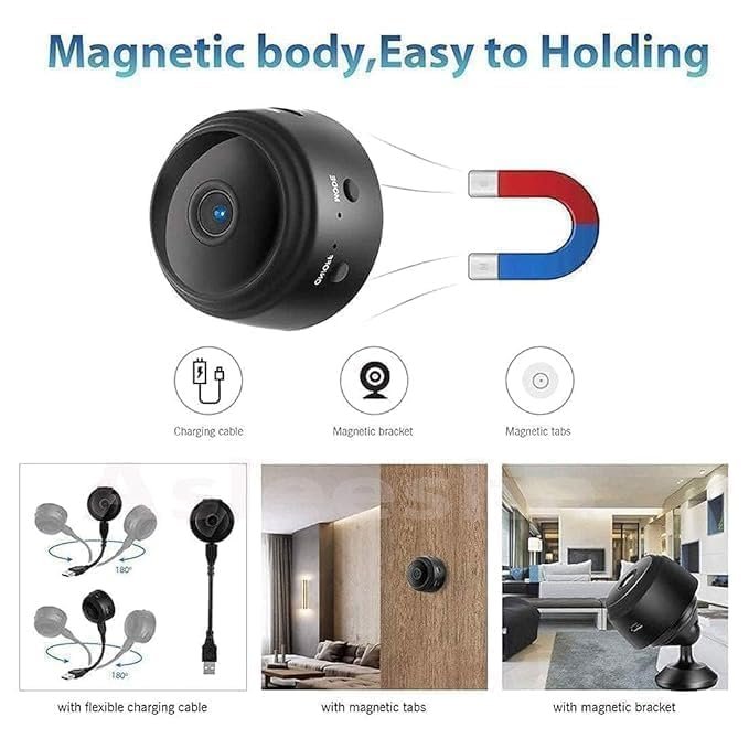 New 360 : HD plus small mini cam records video in exceptional 1920X1080P HD at 30 frames per second. Function with video, picture, loop recording, motion detective, infrared night vision, time display, magnetic, etc.120° wide angle view that can monitor anywhere in standard distance. Battery Backup After Full Charger 50 to 60 Minutes
