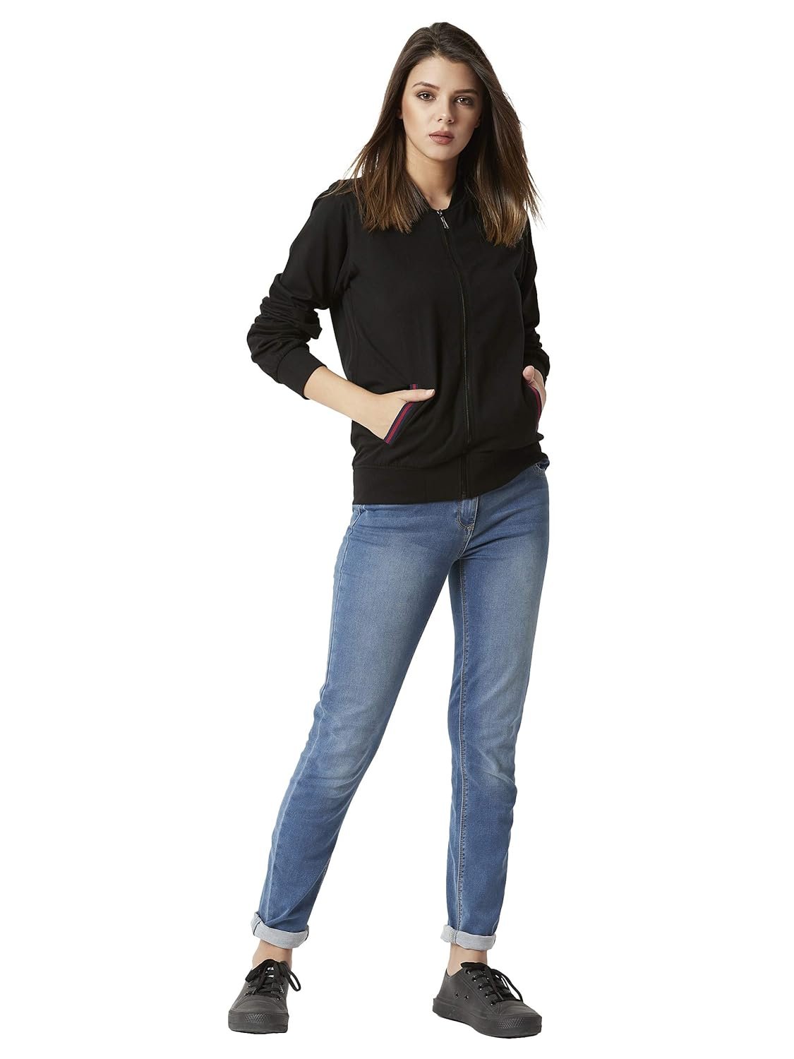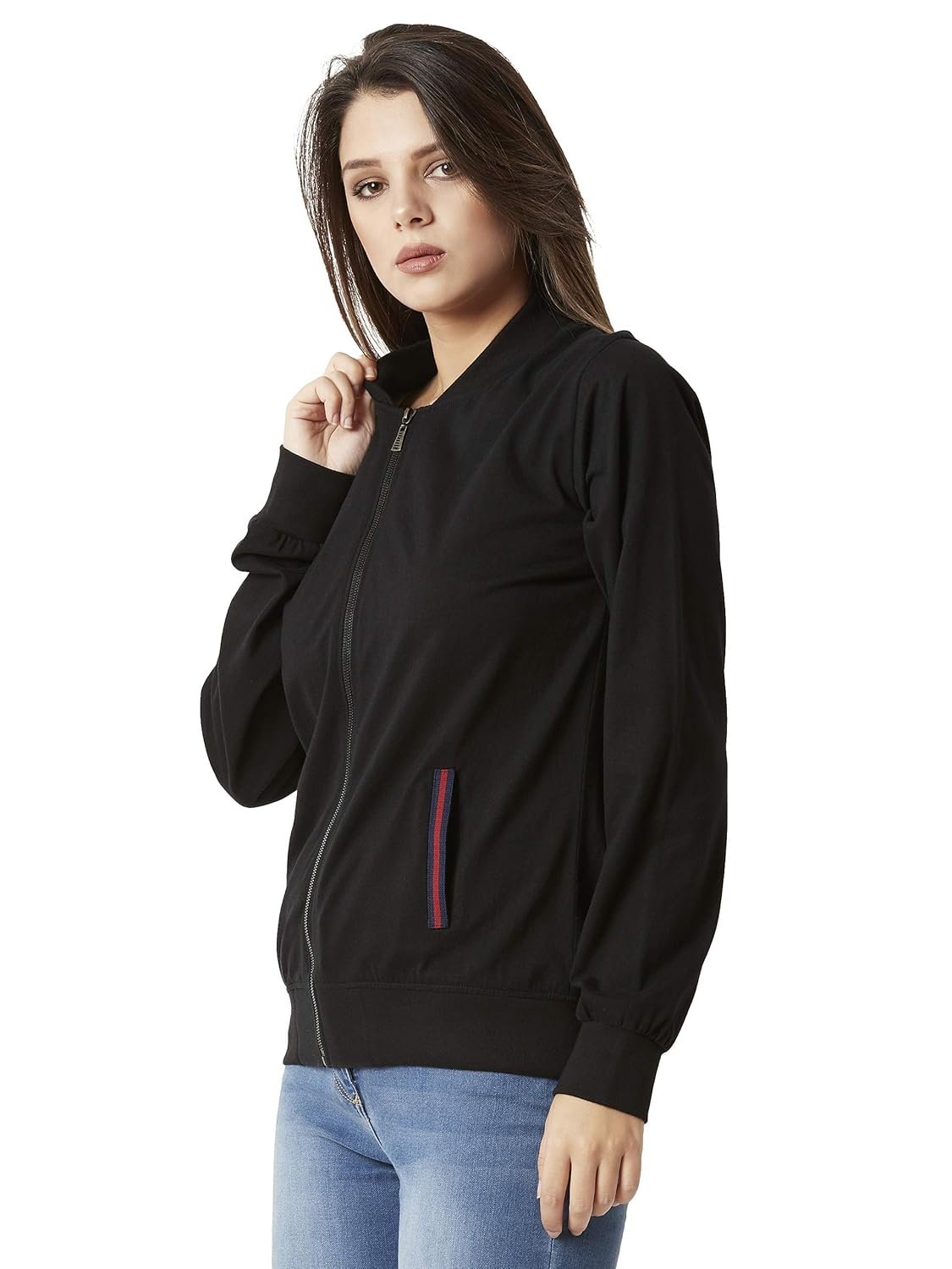 Generic Name ‏ : ‎ Miss Chase Women’s Black Solid Round Neck Full Sleeves Twill Tape Detailing Bomber Jacket (MCAW18JKT02-33-62_Black_L)