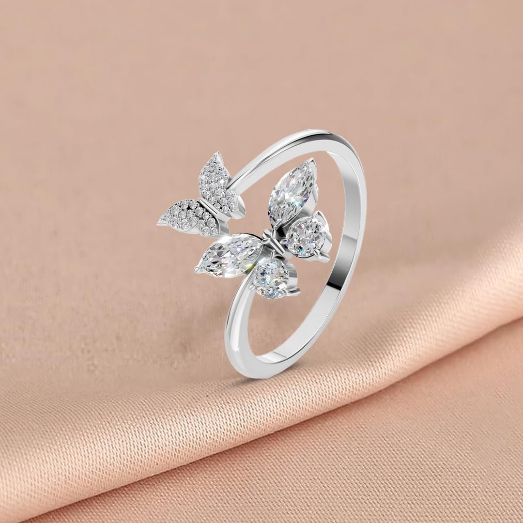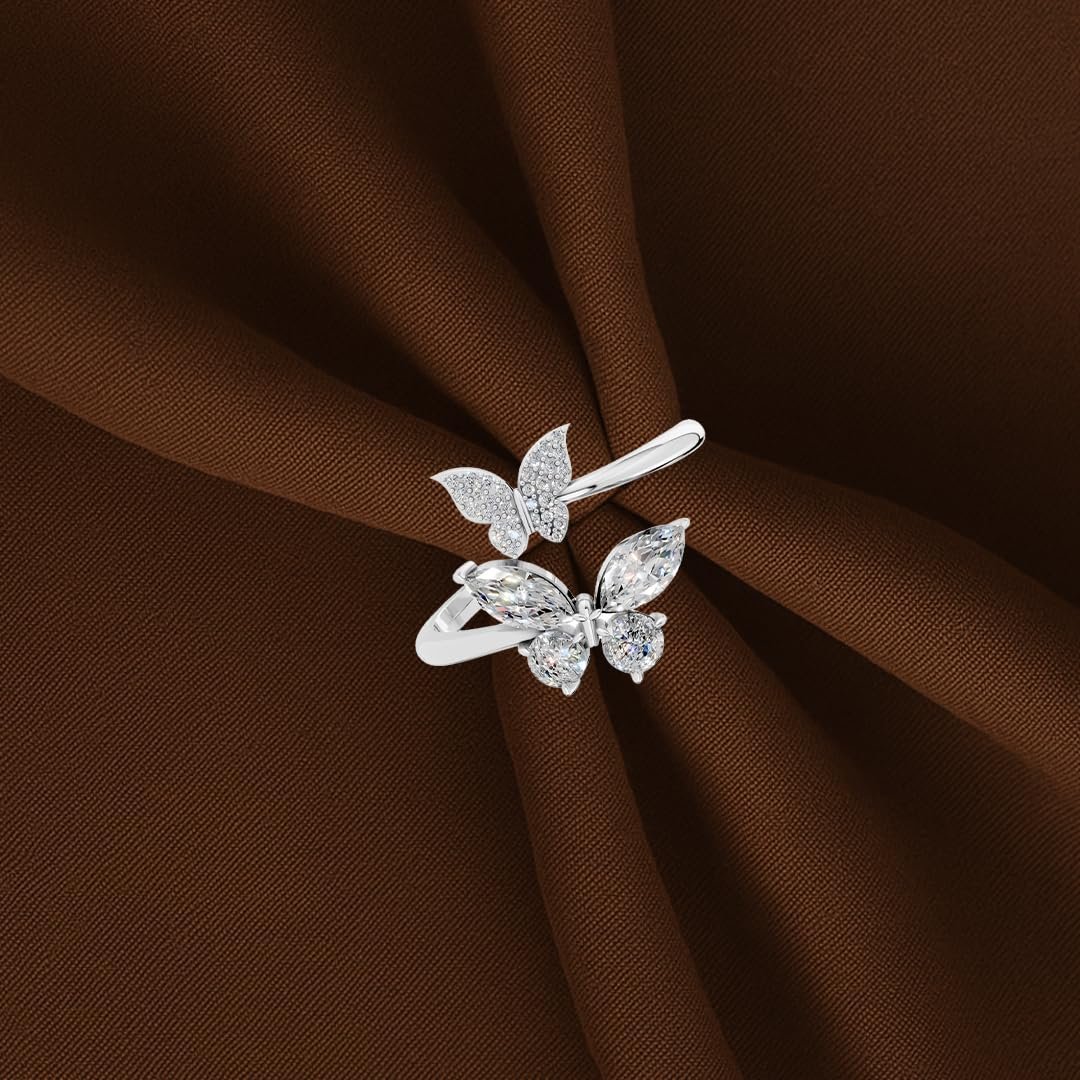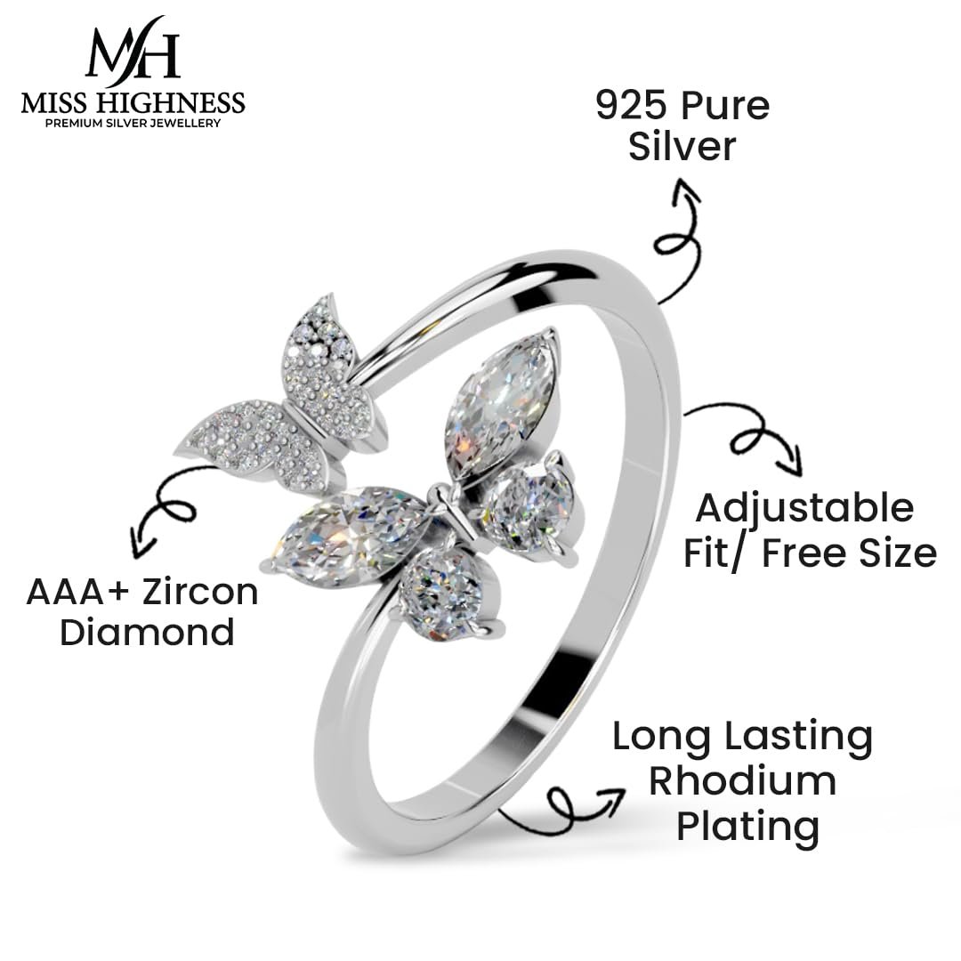 Miss Highness 925 Pure Sterling Silver Ring for Women and Girls, Butterfly Rings, Rhodium Plated, Adjustable Free Size, BIS Hallmark, Valentine’s Day Gift for Girlfriend, Birthday, Anniversary Surprise for Wife