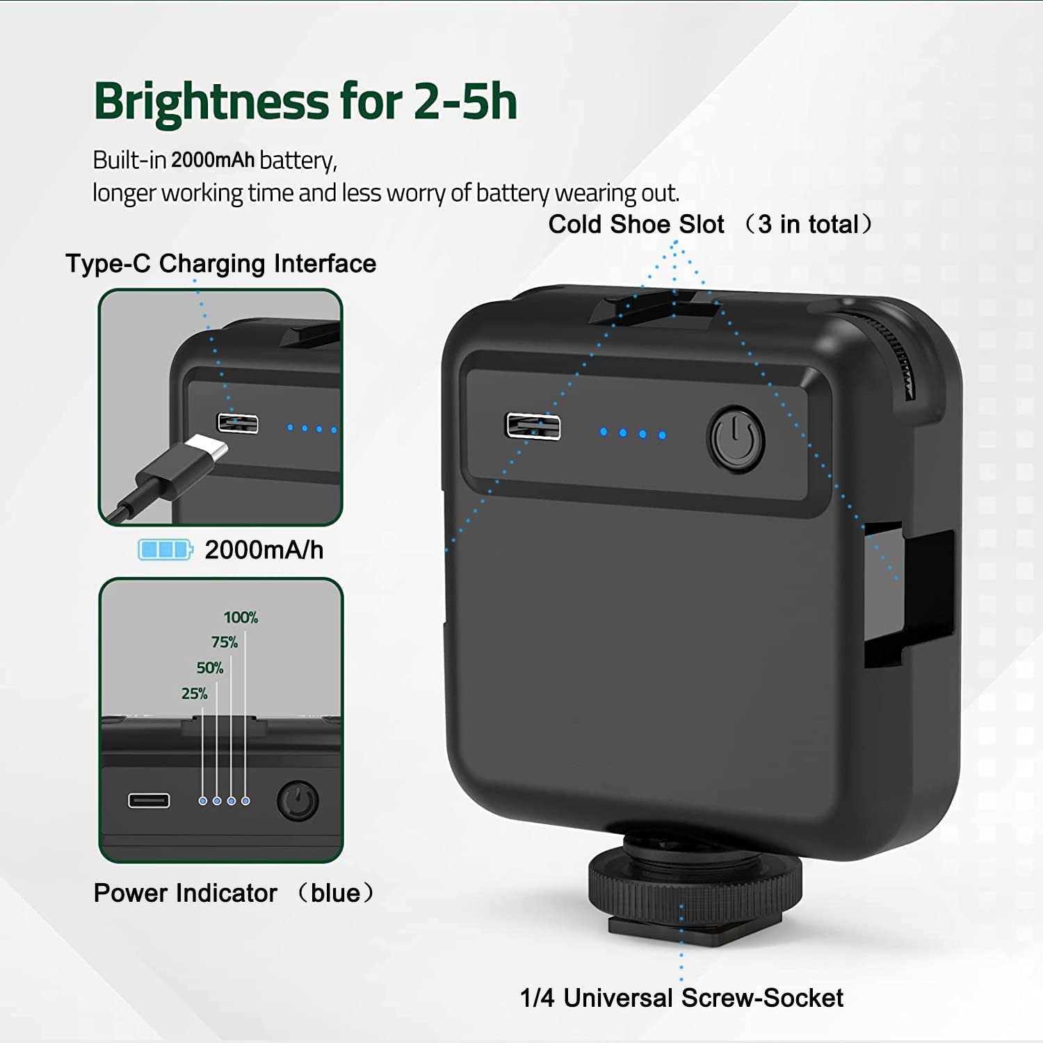 [Long Battery Life & easy to carry]– Bulit-in 2000mAh rechargeable battery and contains a type-C charging cable, charging time is about 3 hours, max brightness output up to 2.5 hours, min brightness output up to 5 hours, don’t worry about the problem of insufficient battery. The light size is 7.5*7.5*2.8 cm, the weight is 117g.