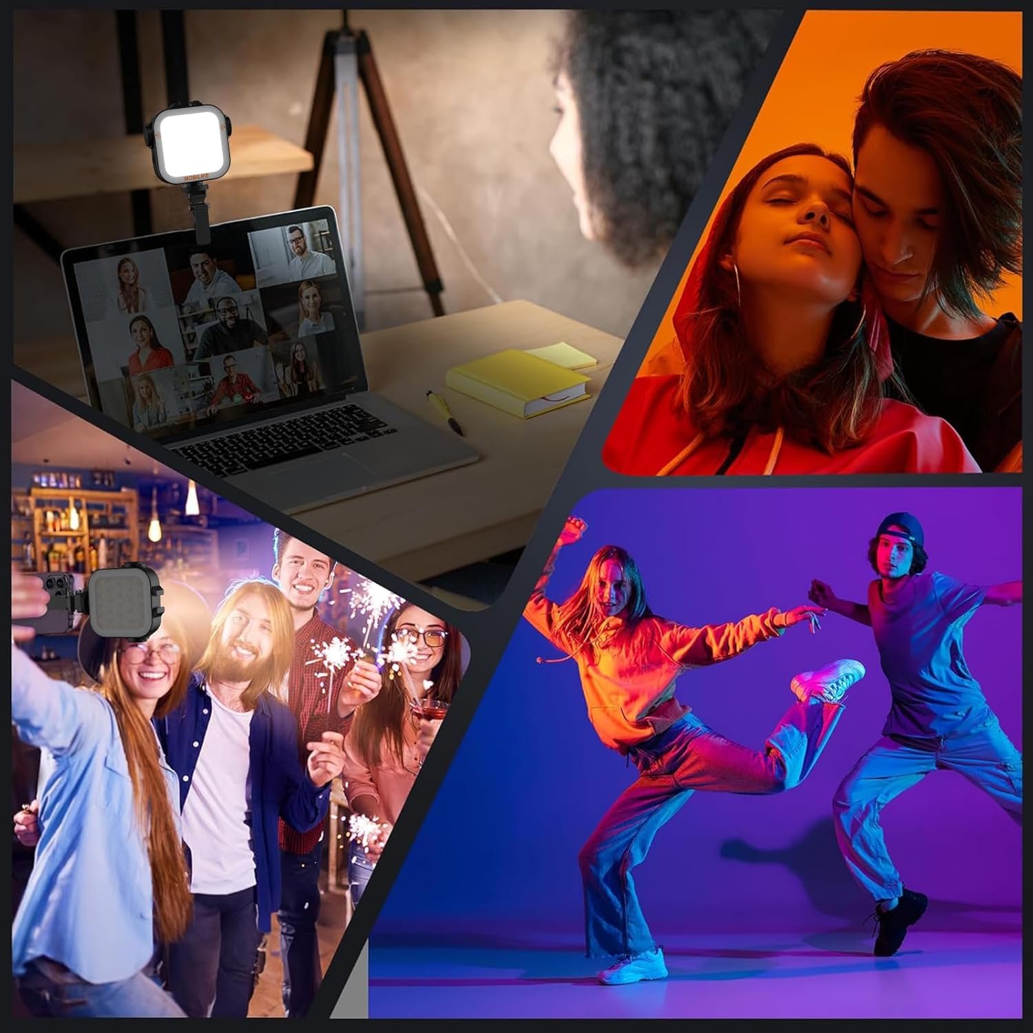 [LED Fill Light for Photography]- The light of the fill-in lamp provides a high-quality light source with color rendering index up to 95+,and the brightness can be adjusted steplessly from 10%-100%, cool light, warm light, RGB light and multiple flashes can be switched to help you take satisfactory photos and videos, and can also be used for video conferencing.