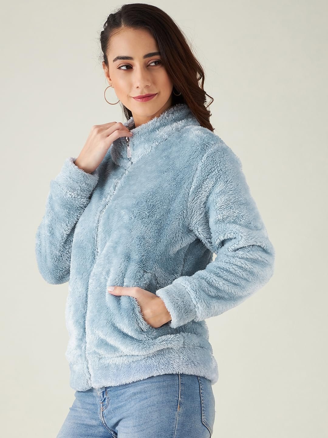 Modeve Women Solid Full Sleeve Fur Standard Length Jacket For Winter