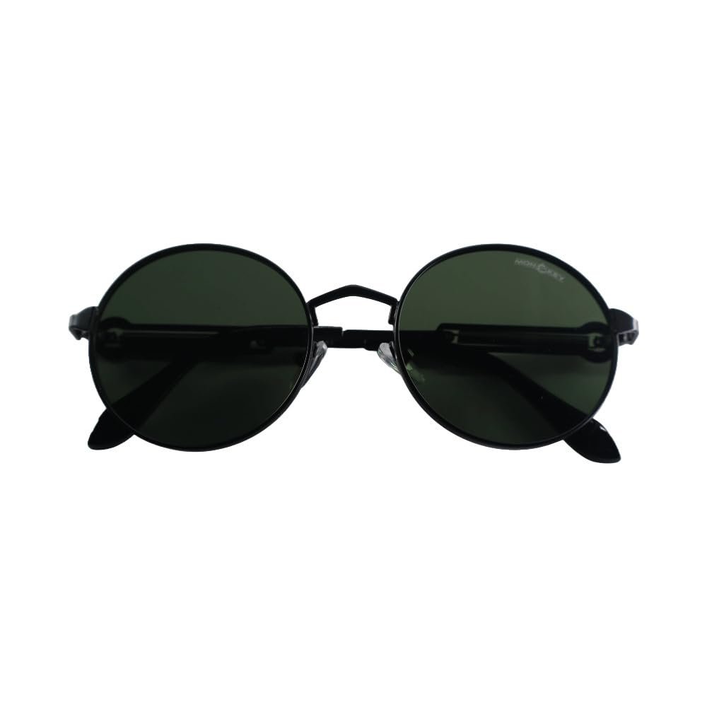 Monkey Unisex Round Polarized Stylish Sunglasses Green Lens | Double Bridge Metal Frame UV Protection | Sunglasses for Men and Women | Latest and Stylish