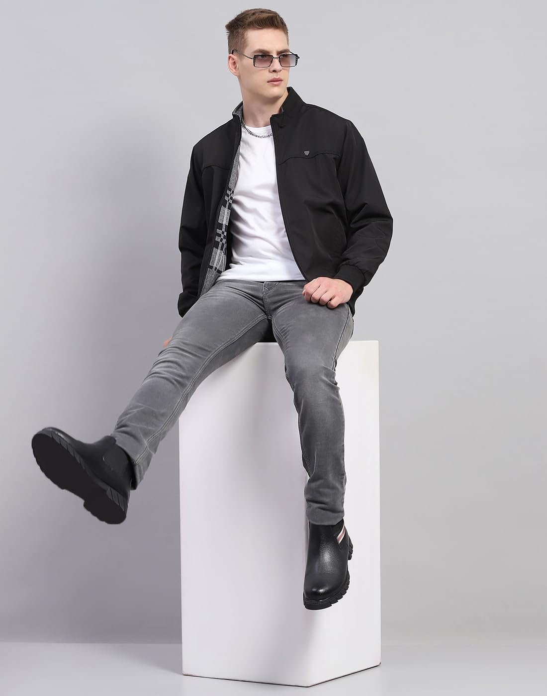 Monte Carlo Mens Solid Black Mock Neck Full Sleeve Jacket