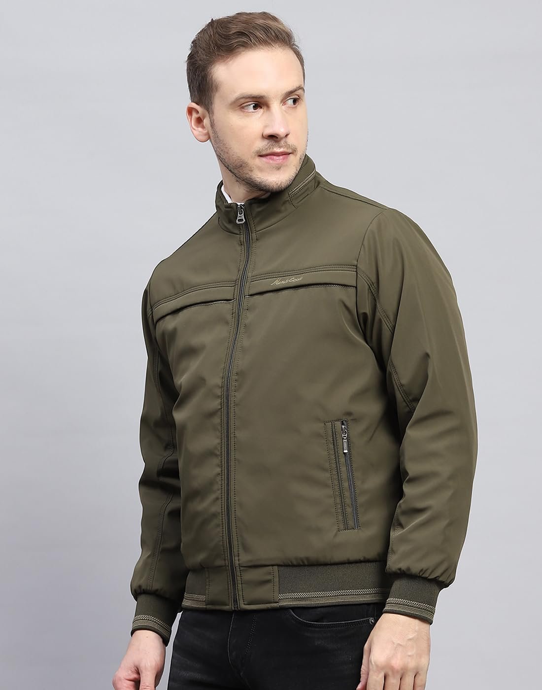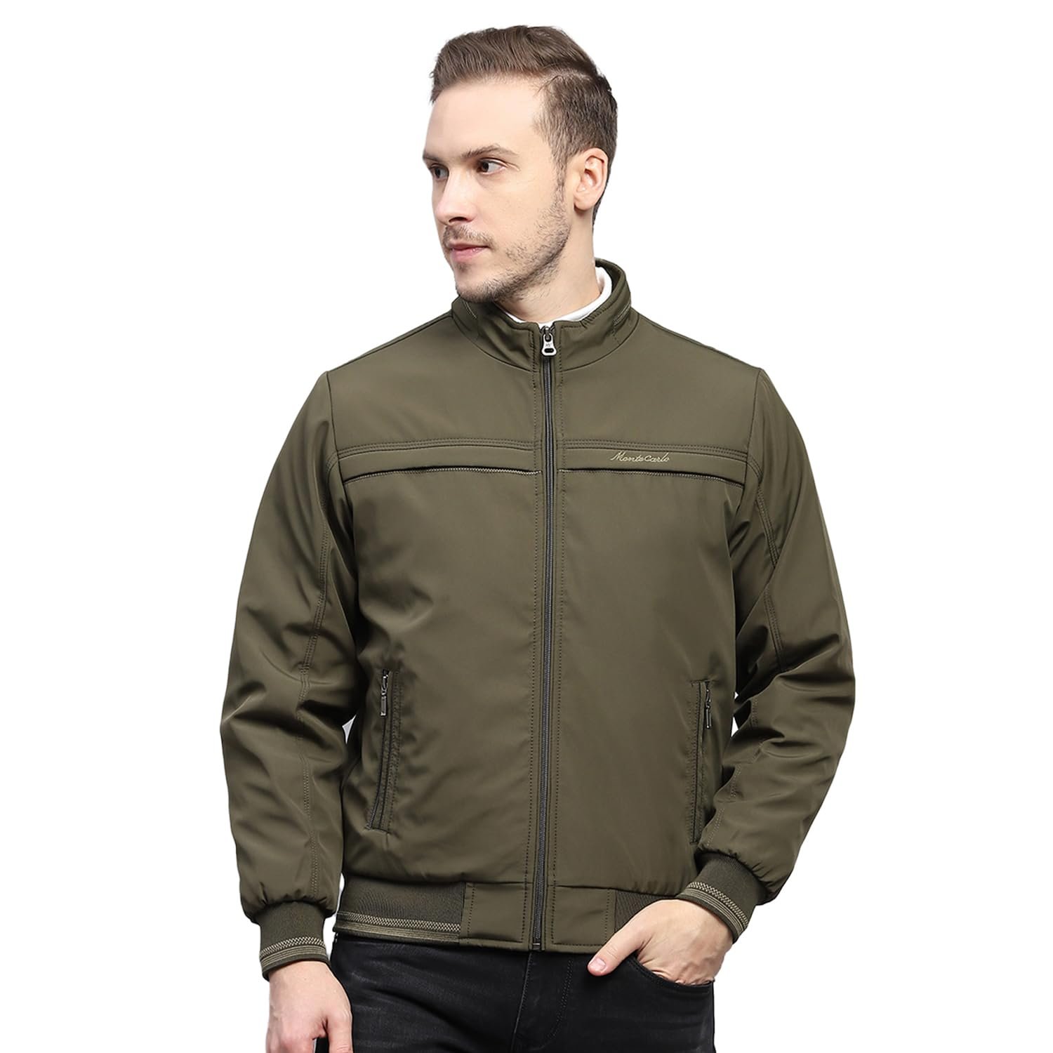 Monte Carlo Mens Solid Mock Neck Full Sleeve Jacket (224066748)