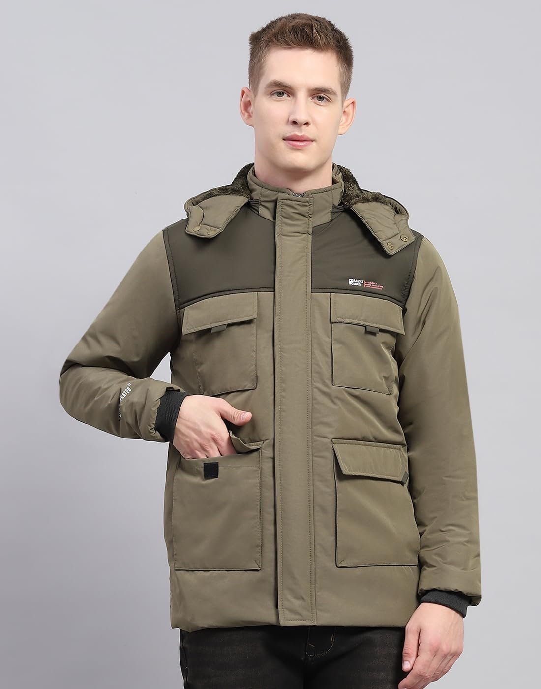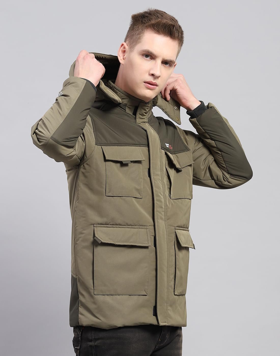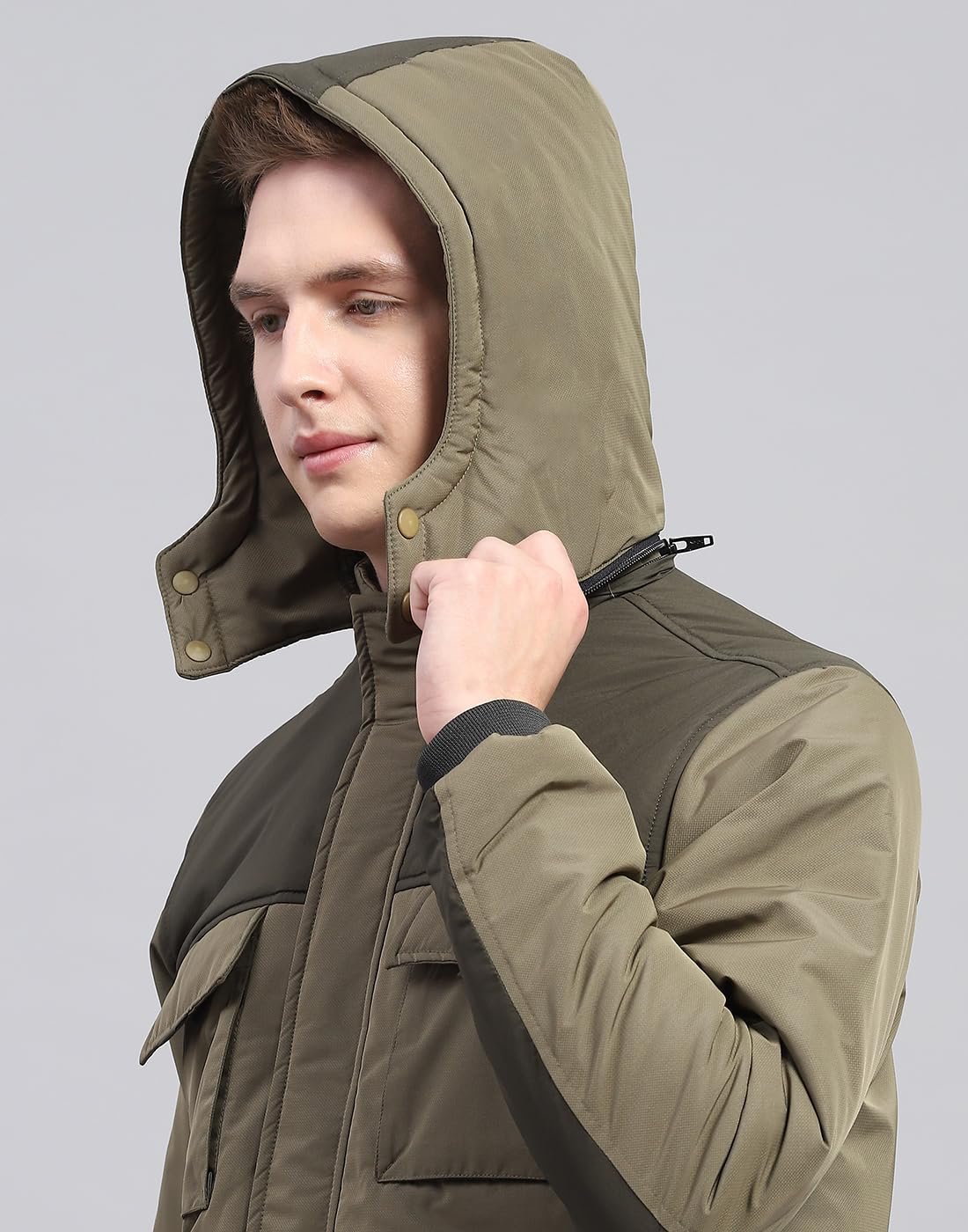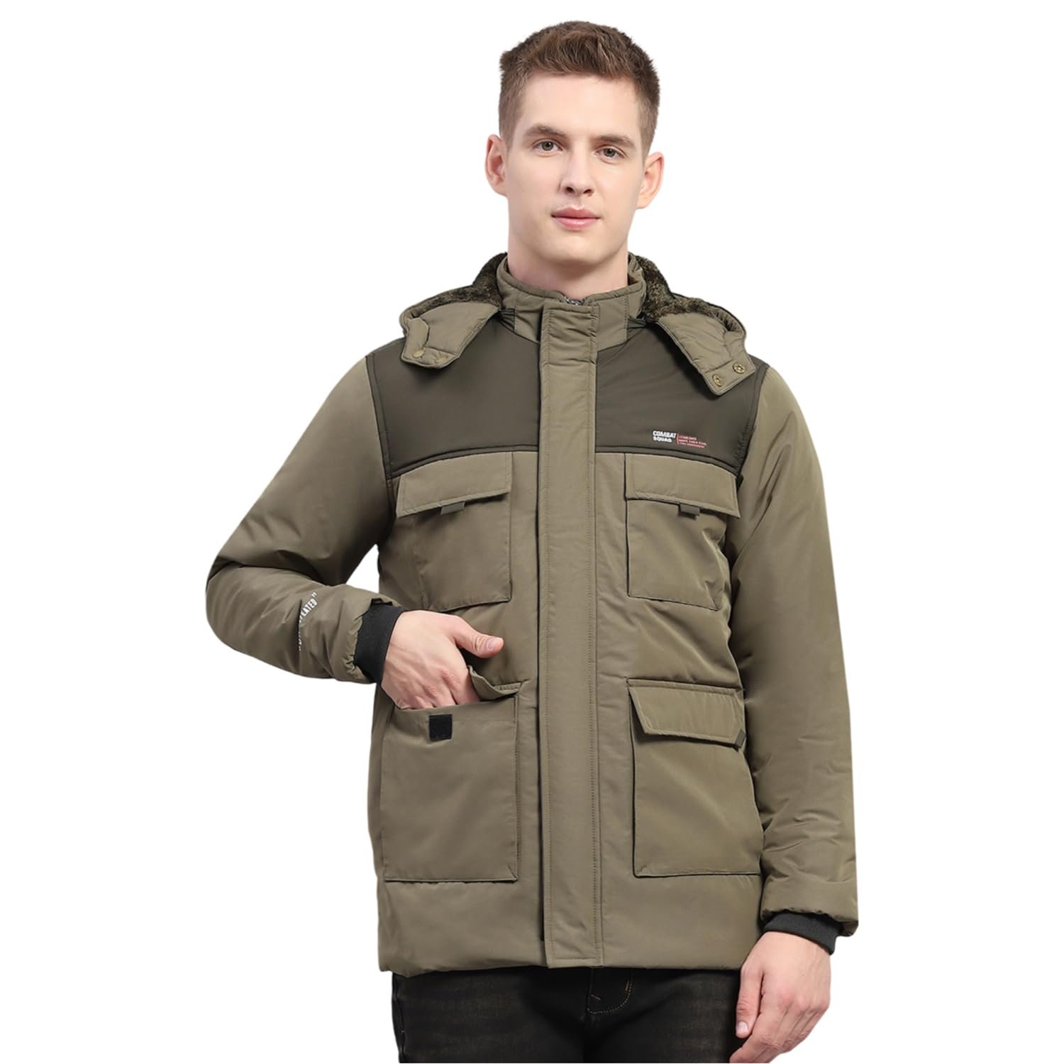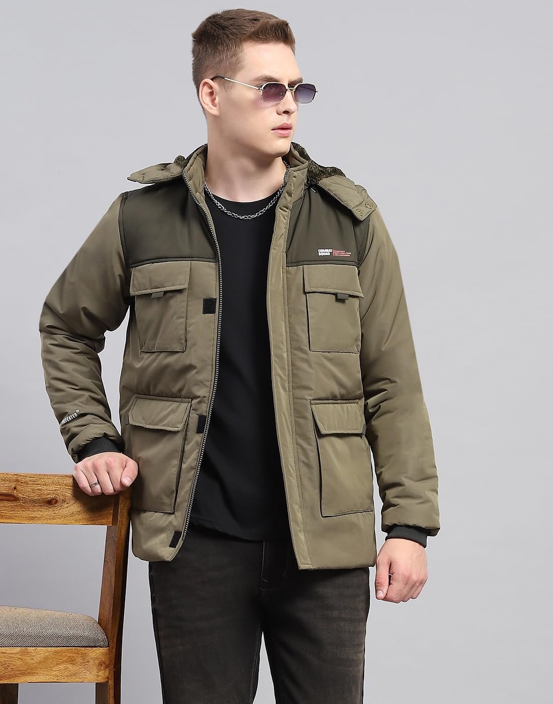 Monte Carlo Mens Solid Olive Detachable Hood Full Sleeve Jacket