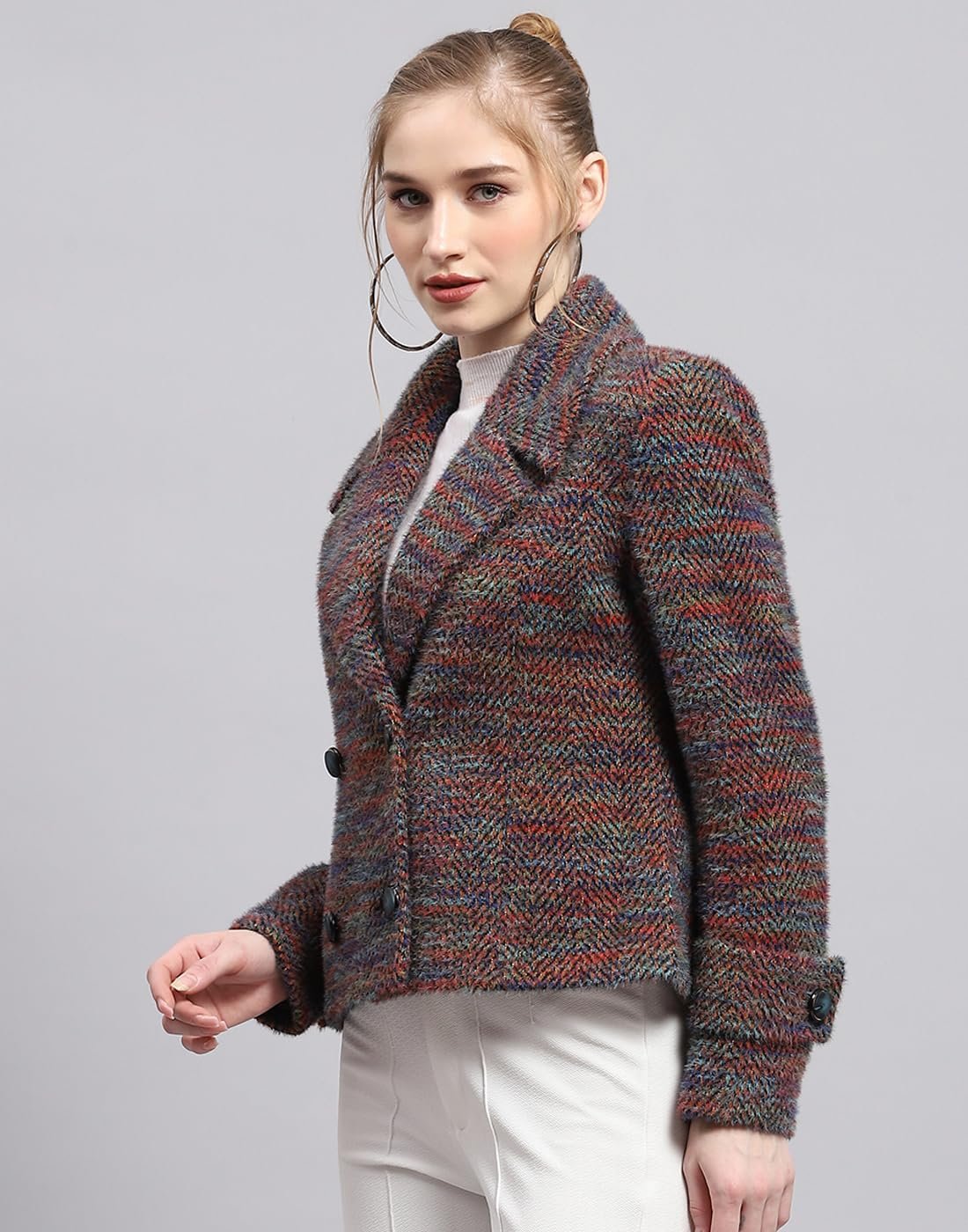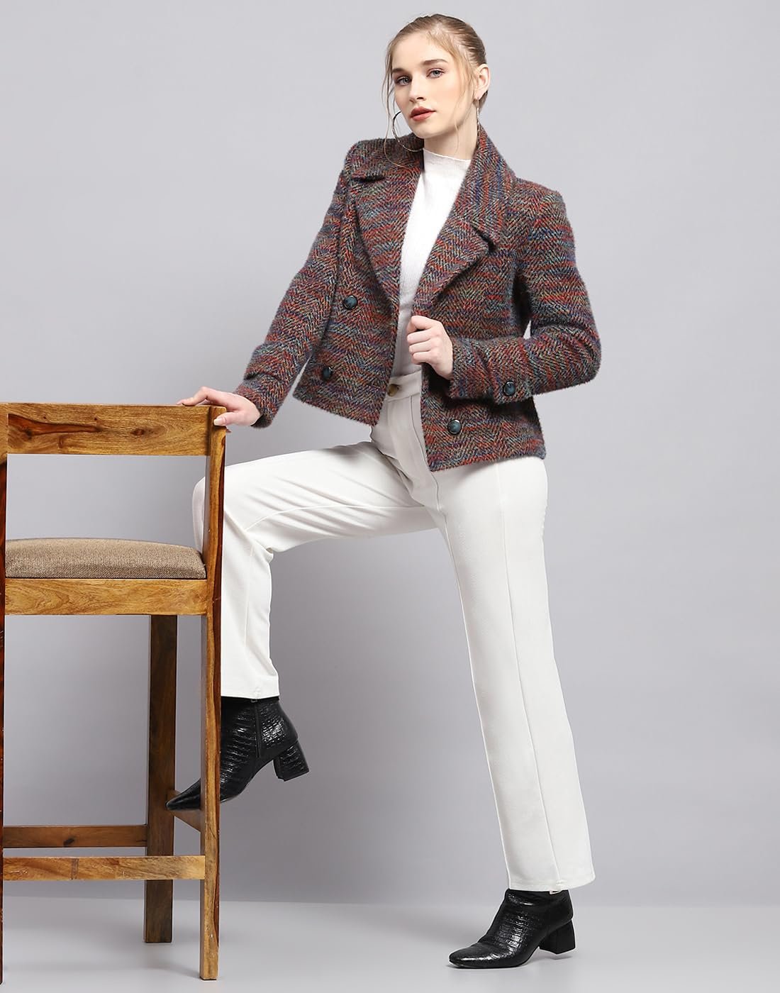 Monte Carlo Womens Self Design Collared Neck Full Sleeve Coat (224067302)