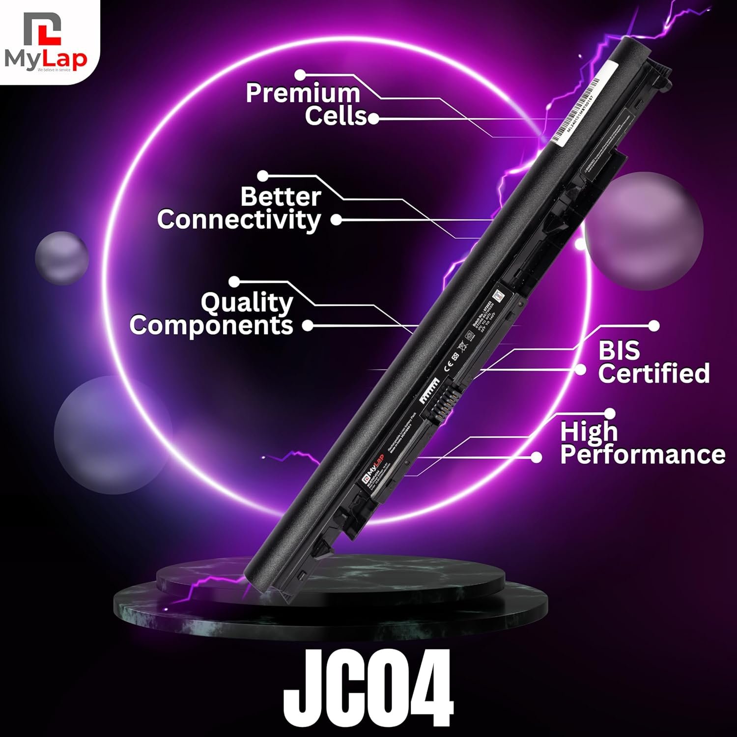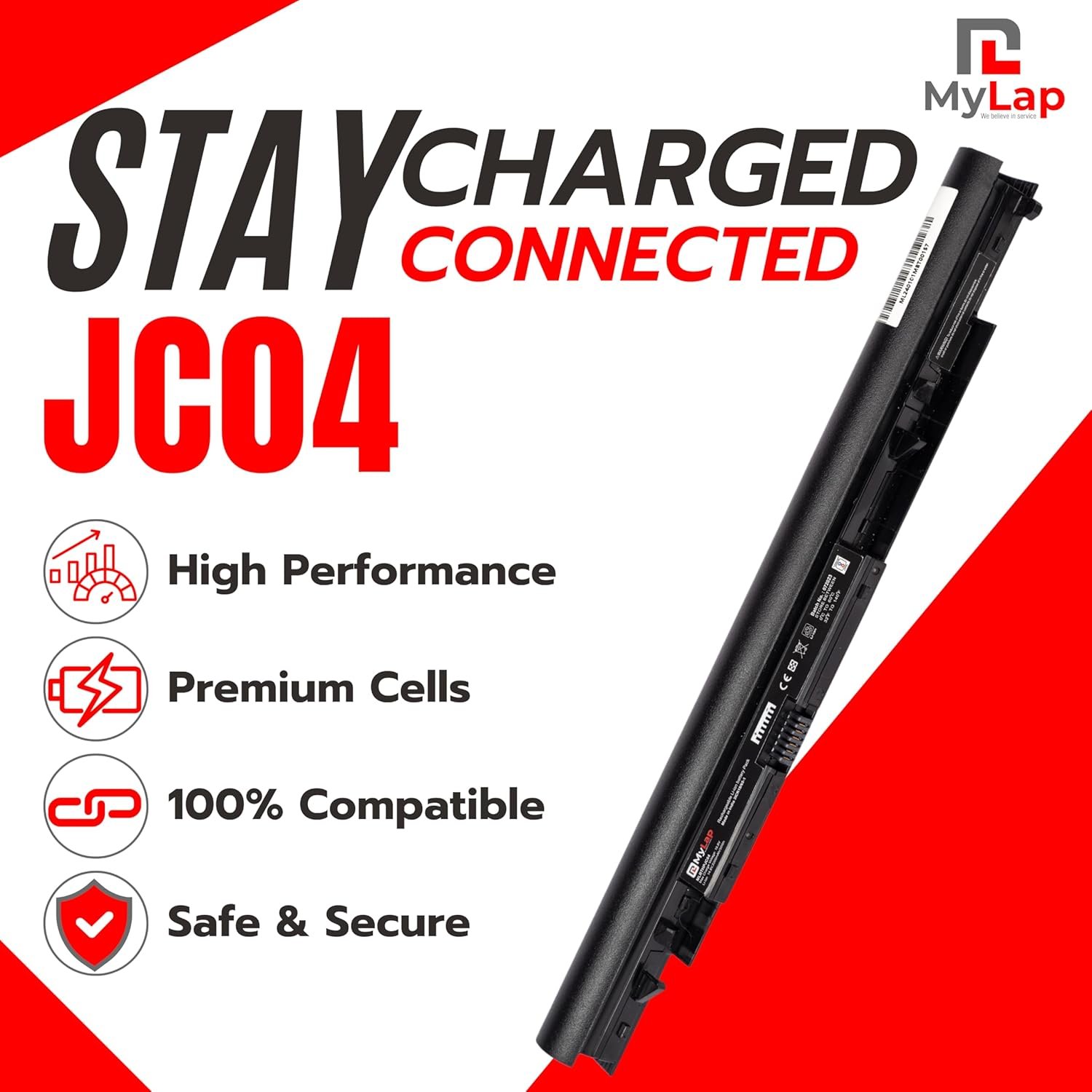 Mylap’s High-Performance Laptop Battery boasts premium cells at its core, ensuring superior power and durability. Crafted with precision, these cells deliver unmatched reliability and extended usage time for your JC04 HP laptop. Experience consistent power output and excellence with every use, backed by Mylap’s commitment to quality. Trust Mylap for a battery that exceeds expectations, driven by premium cells engineered for excellence.