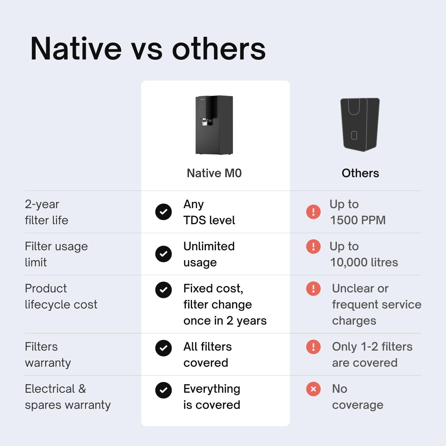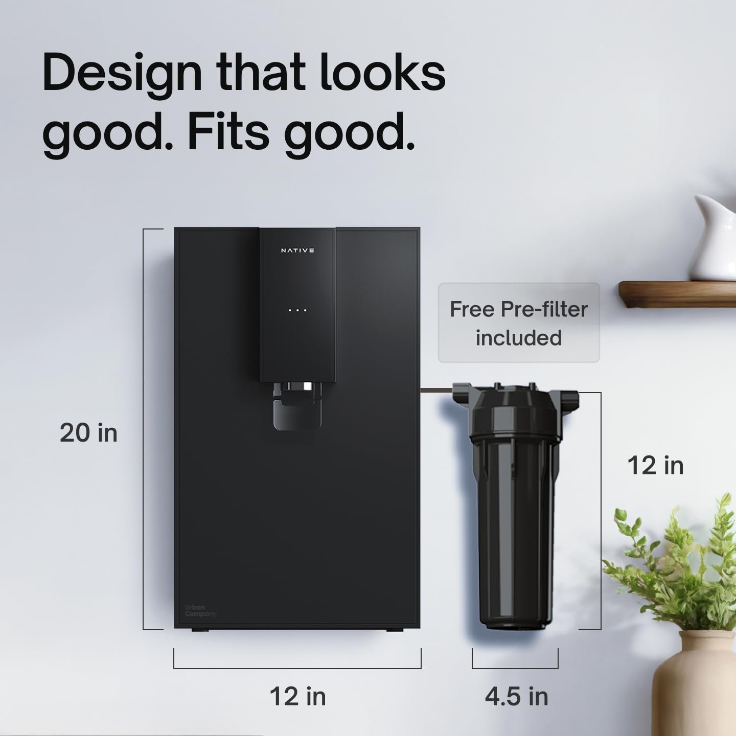 Native by Urban Company M0 RO+ UV Water Purifier | No Service for 2 Years | 2-year Unconditional Warranty | RO+UV 8-Stage Purifier | 6L Storage