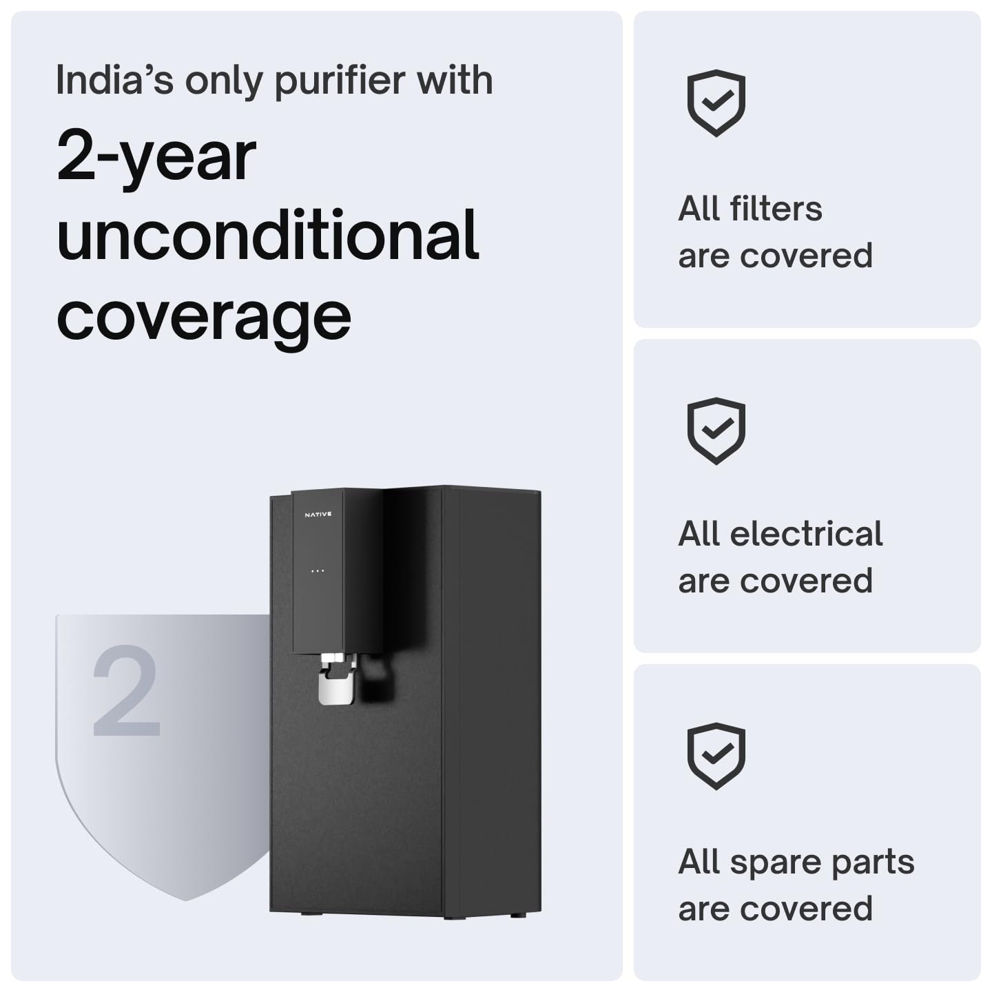 2 Year Unconditional Warranty: All filters, membranes & electrical parts covered at zero cost. Save up to ₹20,000 on service costs over 8 years, regardless of water quality or usage. Avail warranty in one click from the Urban Company app
