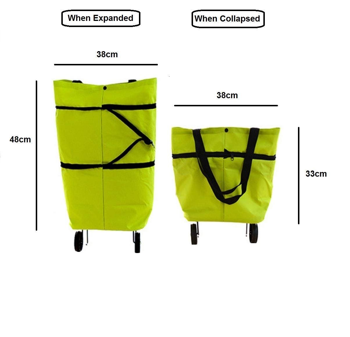 Ideal for outdoors, to store all Your shopping’s.Be it Vegetables, Groceries, Clothes, shoes, Books etc, simply anything.You can even take it with you on your travels.Can be used as a storage bag, pouch, great for travelling or shopping Large capacity, great for travelling or shopping.Light & portable – can be folded to fit into your bag and use it whenever you need.wheel shopping luggage bag Foldable Trolley Shopping Bag.Package Contain : 1 * Foldable Trolley Bag.Color / Design may slightly vary based on stock available.