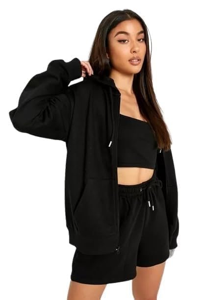 PAKLON Solid Hoodie Long Sleeve Front Zipper with 2 Pockets Sweatshirt for Women