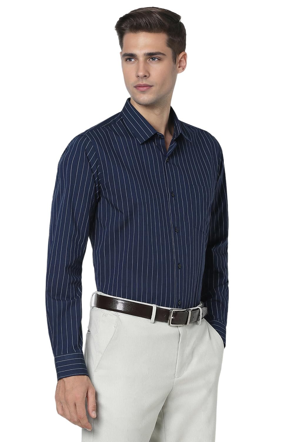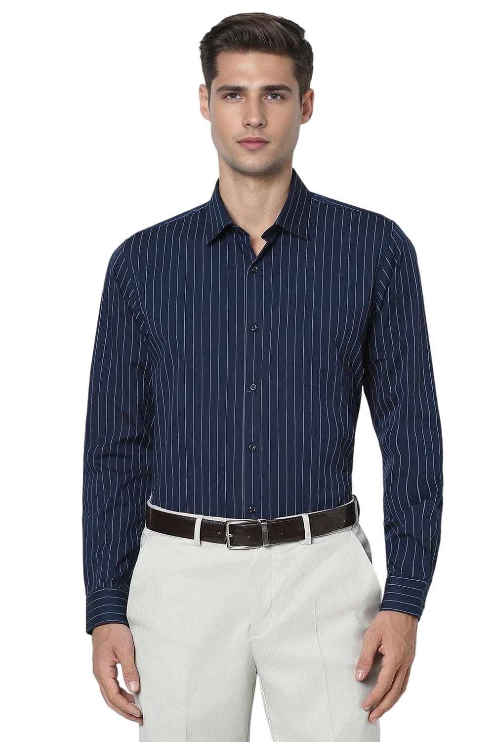 For the contemporary man who wants to make an incomparable fashion statement, try our slim navy stripe shirt from the renowned Peter England collection. Perfect for formal occasions, its full sleeves add sophisticated charm to your attire. The classic color and cotton material speak to quality standards, making you feel cool and comfortable all day. Remember, simply dressing isn’t enough. Its about communicating the right message through your style.