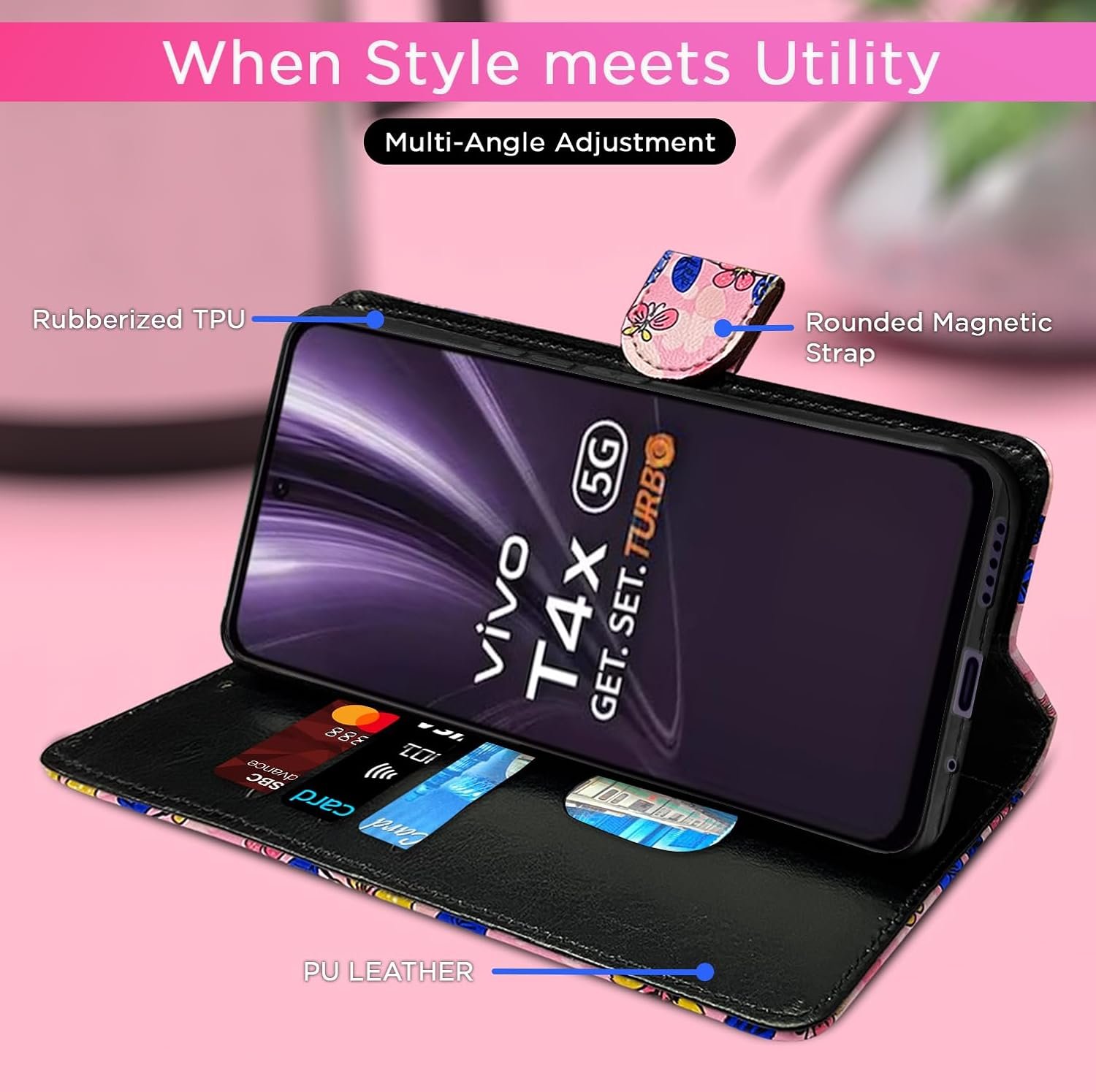 Invest in your brand new Vivo T4x 5G device’s protection today through this fit to use executive Pink Flower leather stand wallet case flip cover and save yourself from the heartbreak and agony of watching the scratches and damages on your device multiply periodically. This sleek executive flip cover case is designed to a perfect fit on your mobile and smooth surface further adds to its polished looks. This pouch comes with inner shell back cover that does not break easily and aids in shock absorption during impacts. This wallet case comes with card slots to store receipts, cards or emergency cash. You can now video chat or watch movies hands free in landscape mode with the wallet stand. Perfect and precise cutouts allow easy access to all ports.
