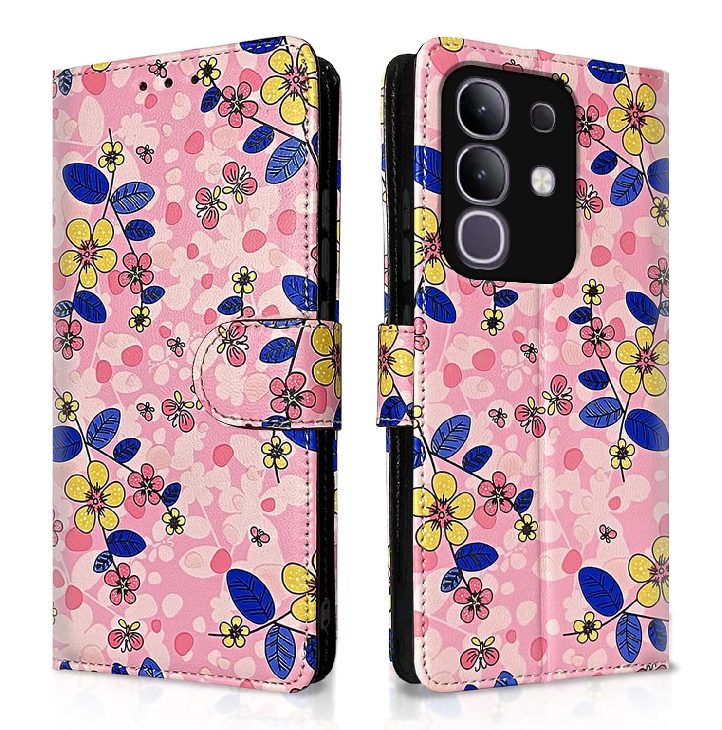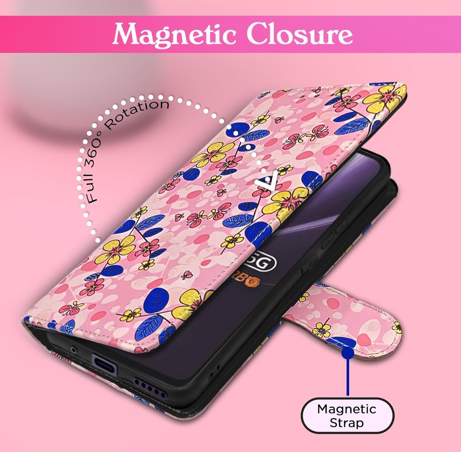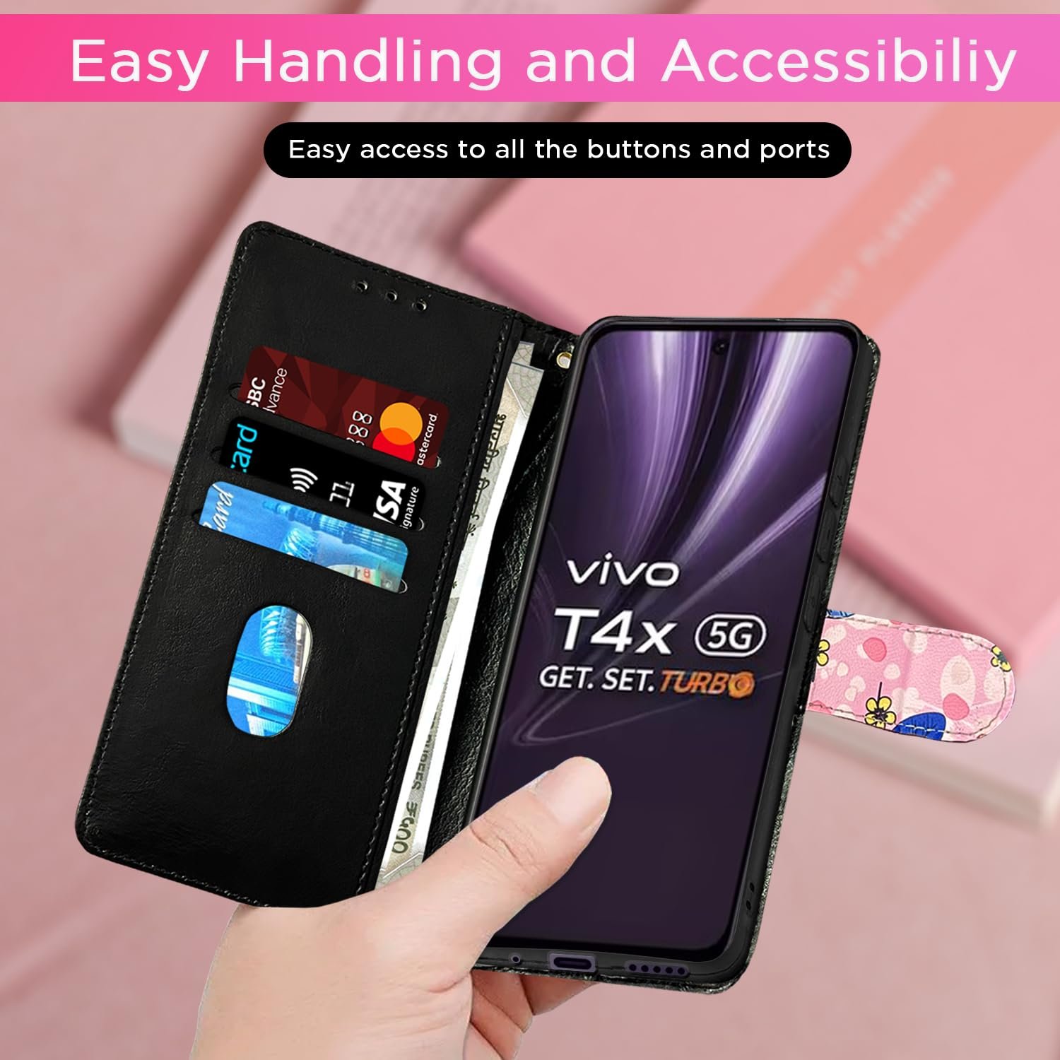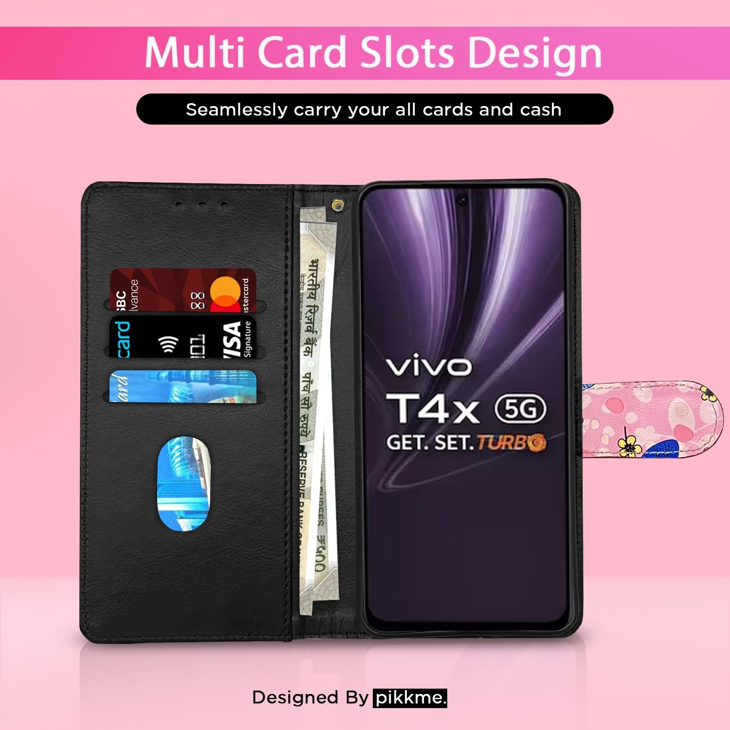 Pikkme Flip Cover for Vivo T4x 5G / iQoo Z10x 5G / Vivo Y31 Pro 5G | Inside TPU with Card Pockets for Girls Leather Finish | Wallet Stand and Shock Proof | Complete Protection Flip Case (Pink Flower)