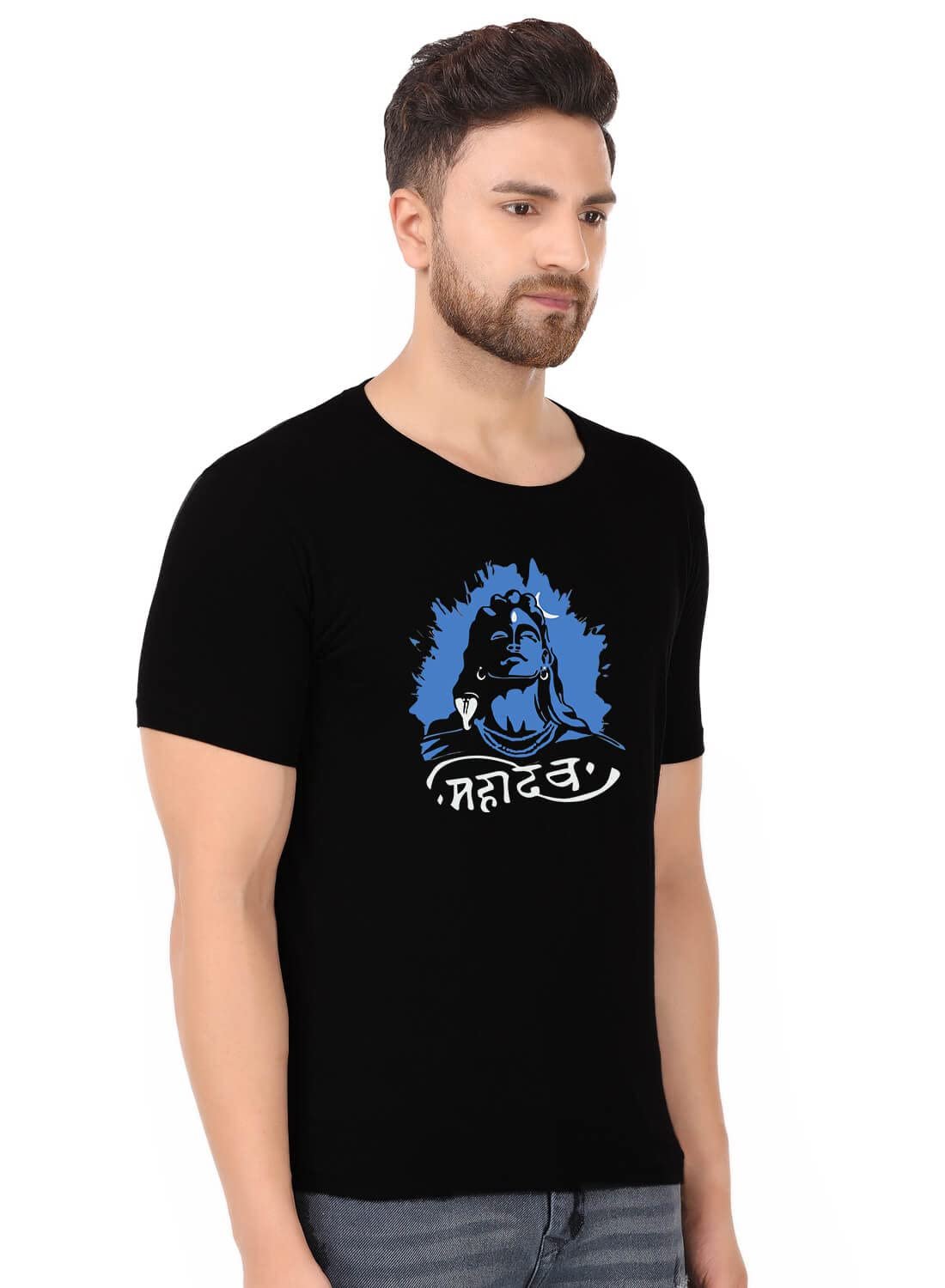 prabhu bhakti Mahadev Image with Text Graphic Printed Tshirts Shiva Mahadev Tshirts Cotton Round Neck Half Sleeve Black T-Shirt for Men Boys Trendy Mahadev Tshirts
