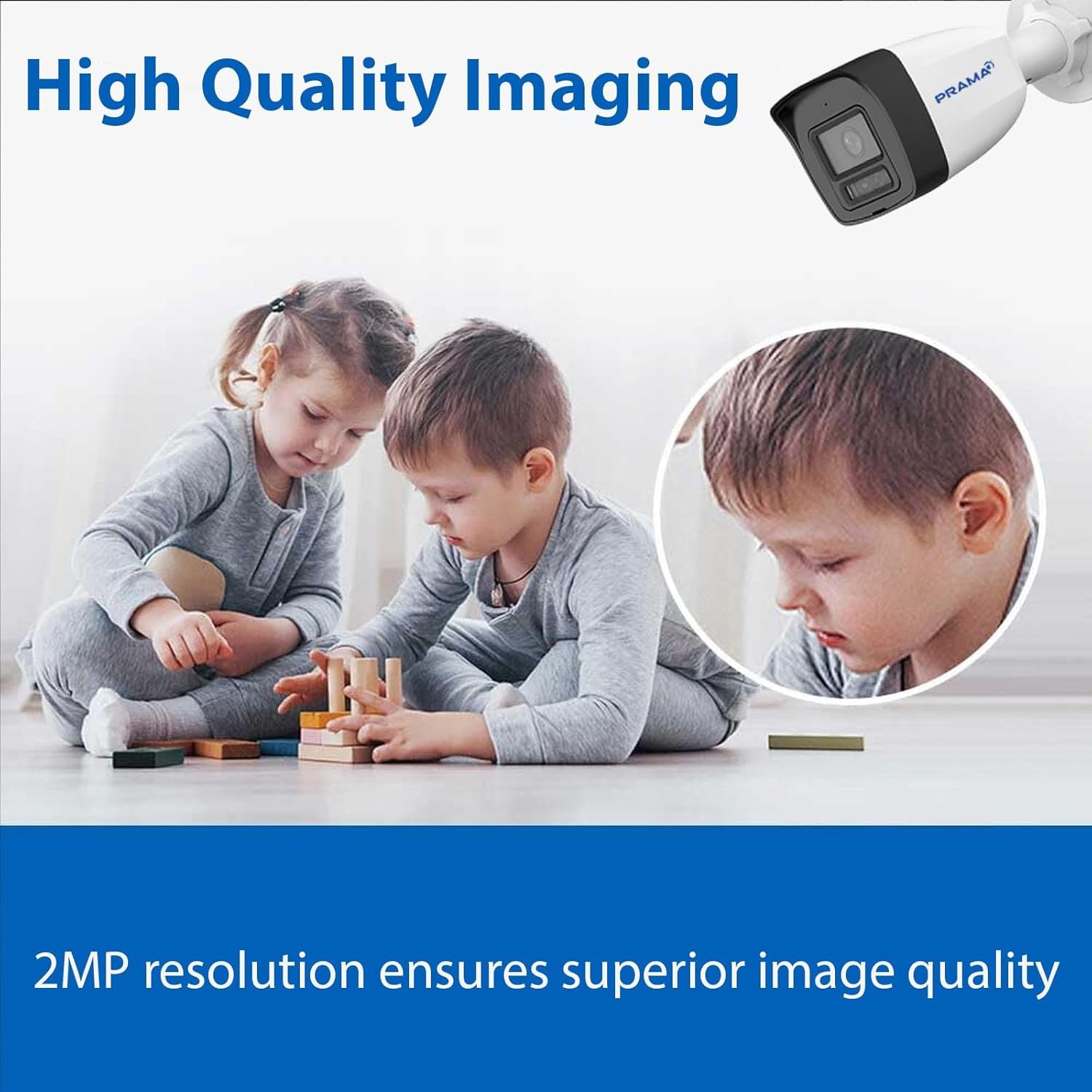 The PRAMA PT-NC120D3-WNM(D2) is a 2MP Fixed Bullet Network Camera that provides superior image quality with 2MP resolution. The camera is designed and manufactured in India. It uses advanced intelligent algorithms to focus on human and vehicle classification to reduce false alarms. The camera also features Smart Dual Light technology with a long range and a built-in microphone for real-time audio security. It supports efficient H.265+ compression technology to save bandwidth and storage and has a durable, water and dust-resistant design with an IP67 rating. Included PVC Stickers.