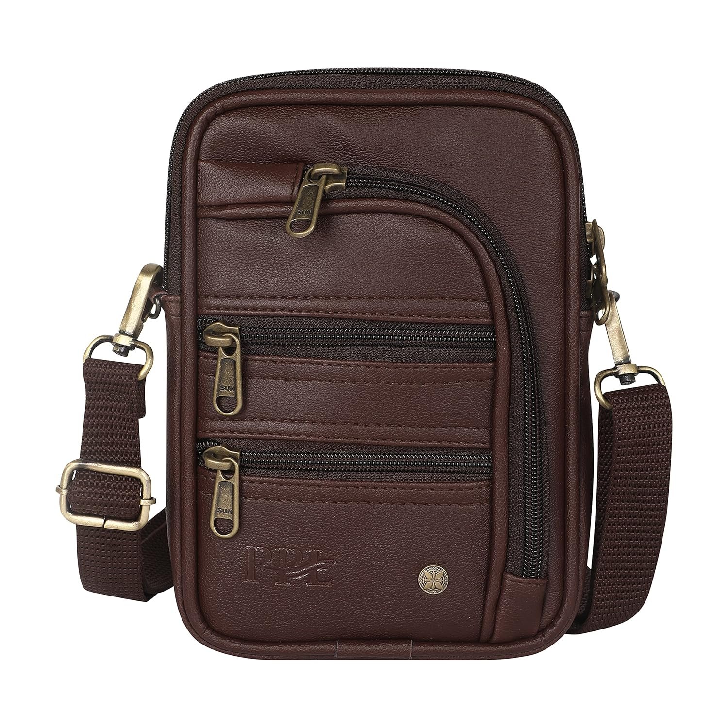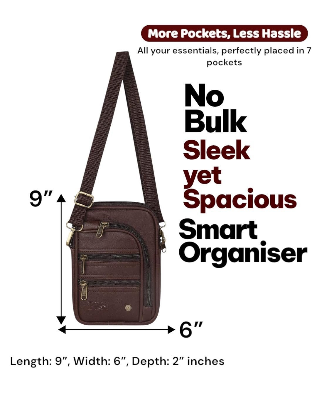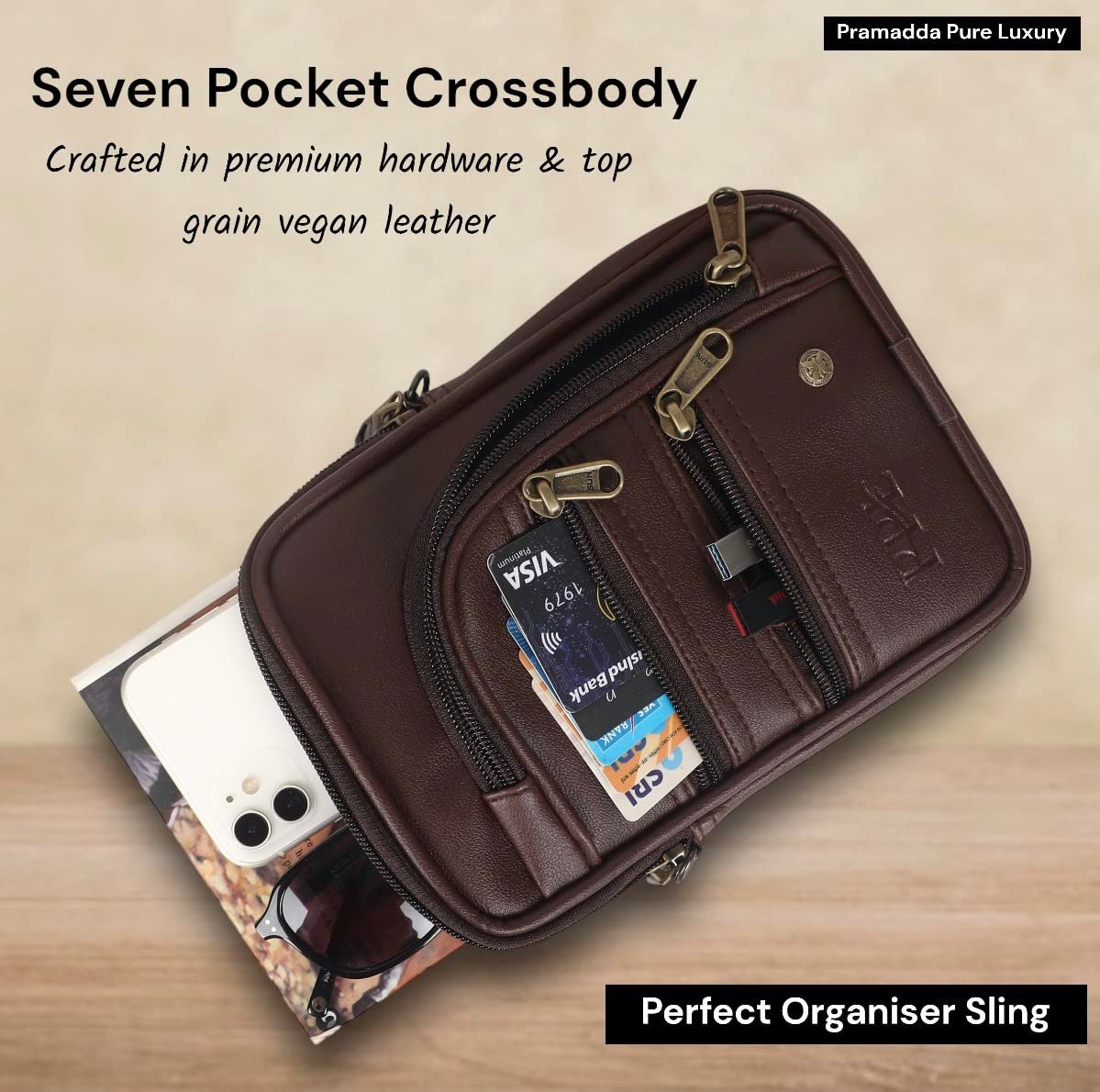 Pramadda Pure Luxury Classic Vegan Leather 7 Pocket Sling Bag For Men and Women | Compact Smart Organiser Messenger Side Mobile Bag For Easy Travel | Special Corporate Gift For Men