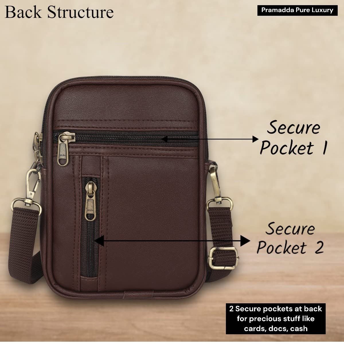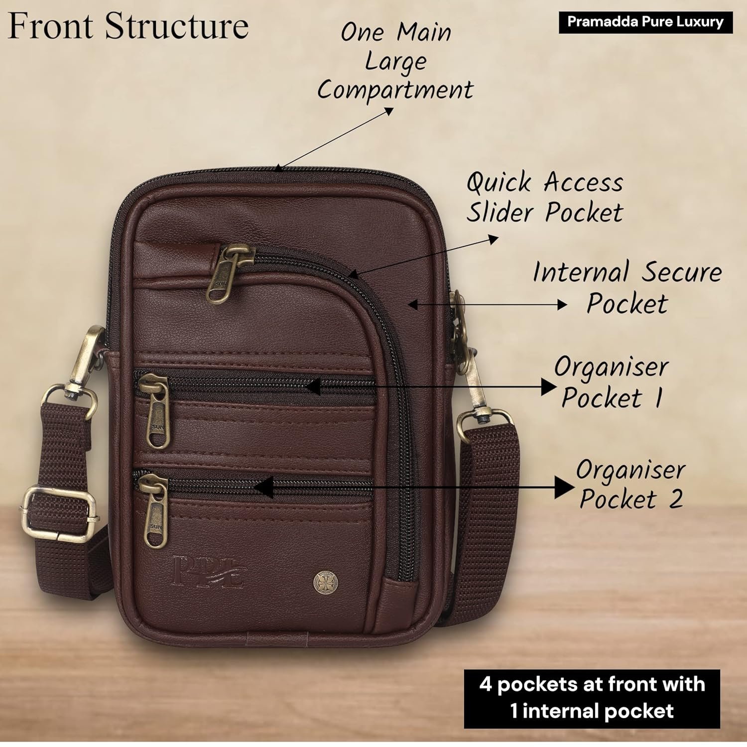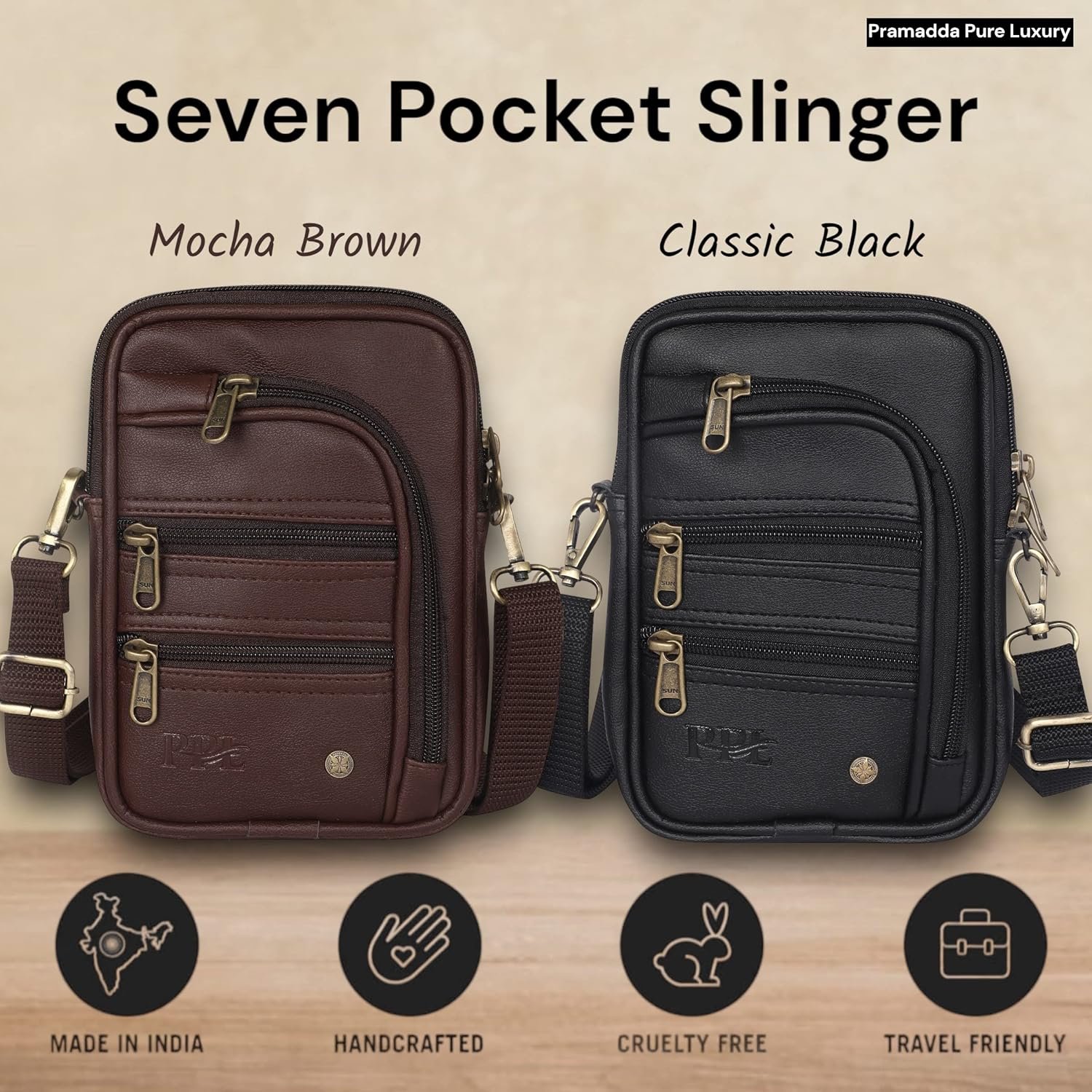Pramadda Pure Luxury Classic Vegan Leather 7 Pocket Sling Bag For Men and Women | Compact Smart Organiser Messenger Side Mobile Bag For Easy Travel | Special Corporate Gift For Men