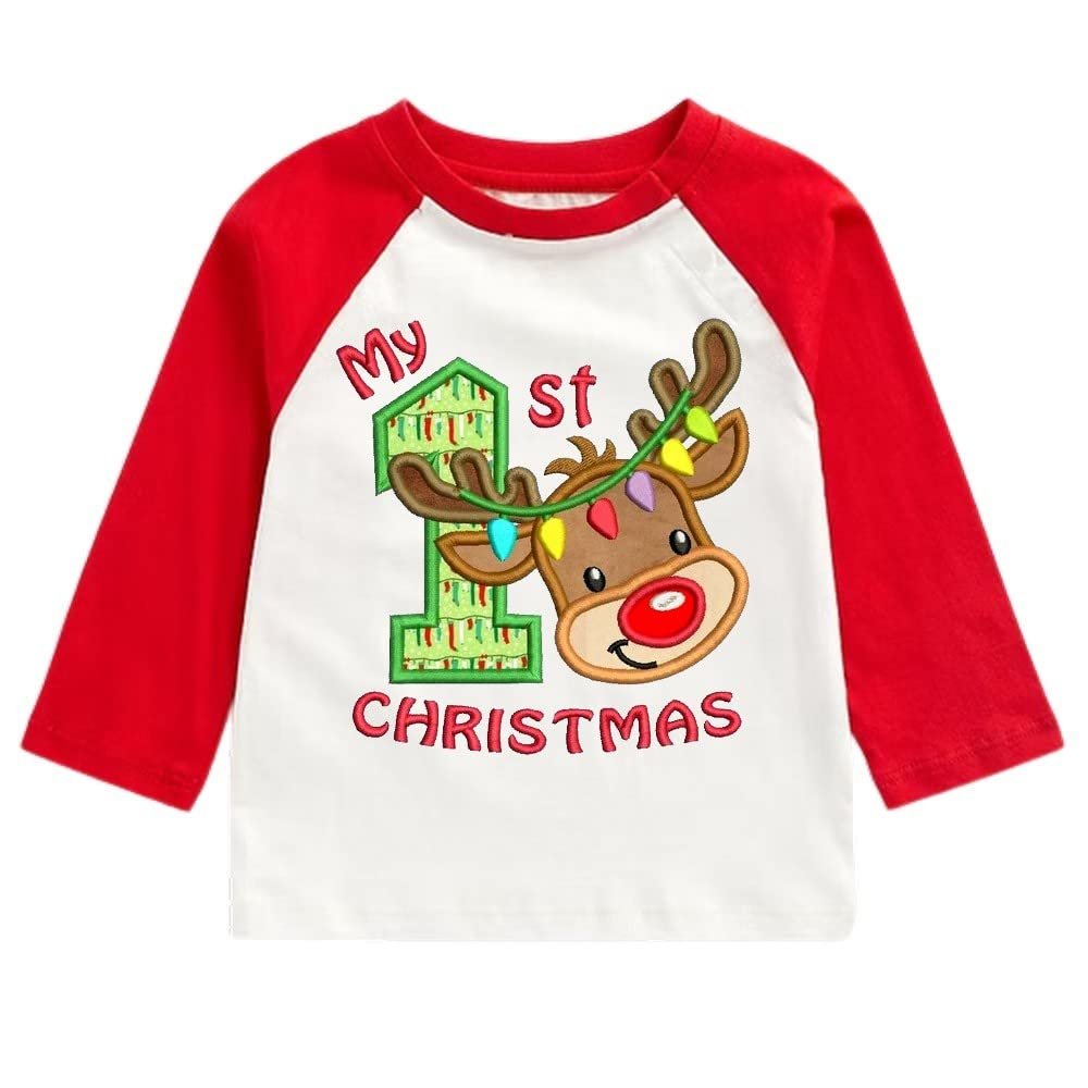 Printmate® My First Christmas | Its My 1st Christmas | First Chirtsmas | Merry Christmas Printed Red & White Raglan Full Sleeve Cotton Kids T-Shirts for Baby Boy and Girl (B204)