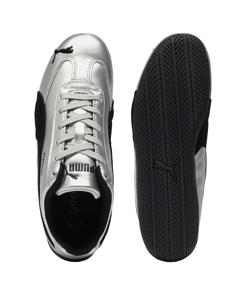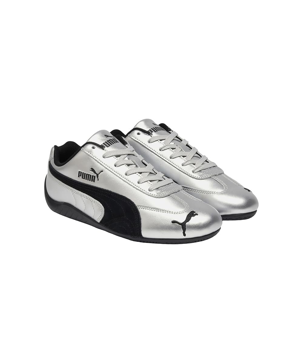 PRODUCT STORY : For over two decades, the PUMA Speedcat has been an icon of streetwear and racing culture. First engineered as an ultra-slim driving shoe designed to shave milliseconds off lap times, it later found its place on the streets of global fashion capitals. DETAILS : Width: Regular, Toe Type: Rounded, Fastener: Laces, Metallic-look upper, Heel type: Flat.