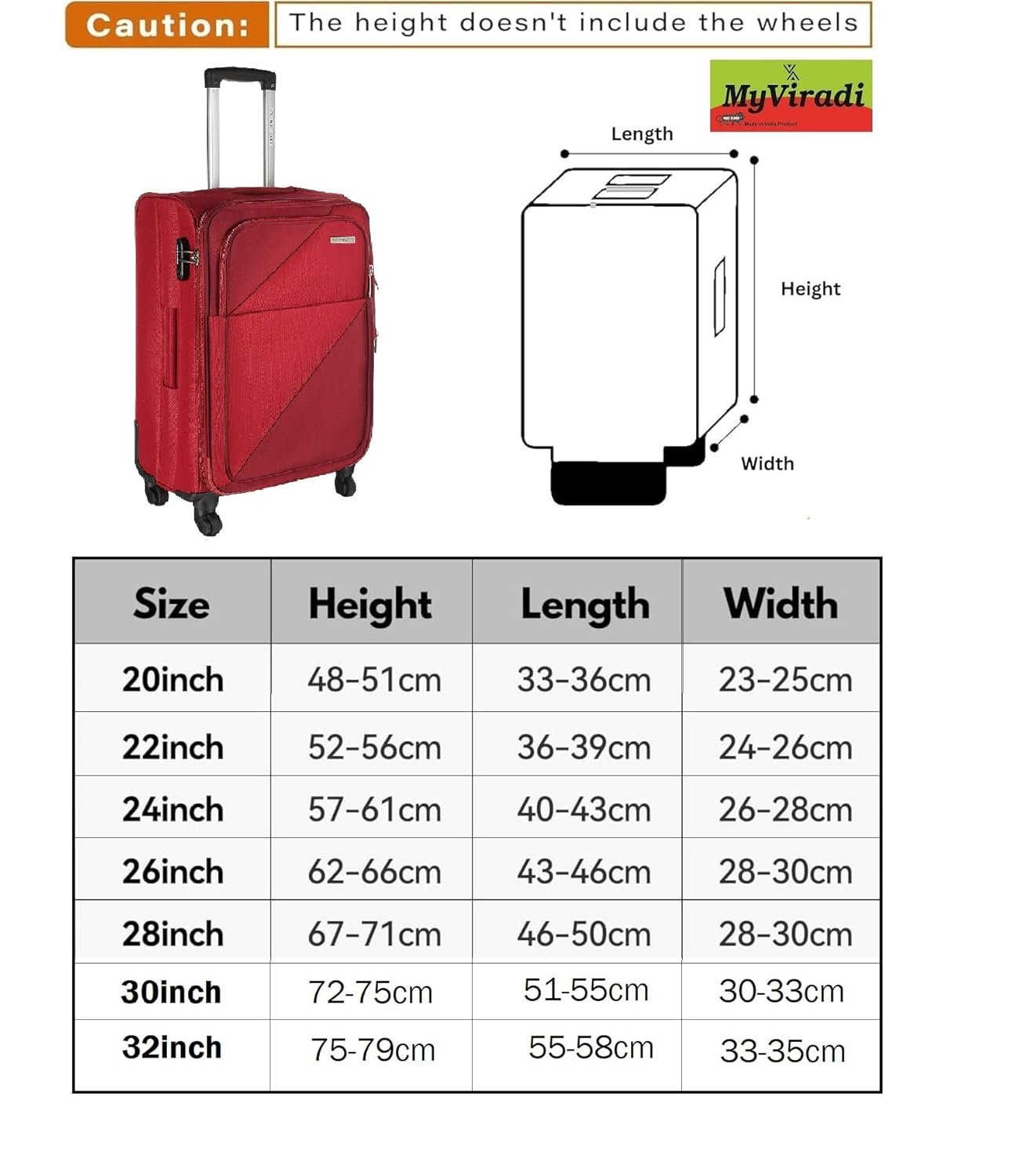 Please measure your suitcase/trolley bag/ before placing the order. You can also refer size image.DO NOT include the WHEEL Height when measuring your luggage height. Our luggage protector fits most major regular hard/soft luggage, but not every luggage