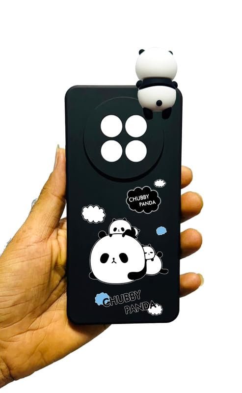 Radha Chubby Panda Phone Case for Oppo F31 Pro Plus 5G, Black Flexible Cover with 3D Panda Design
