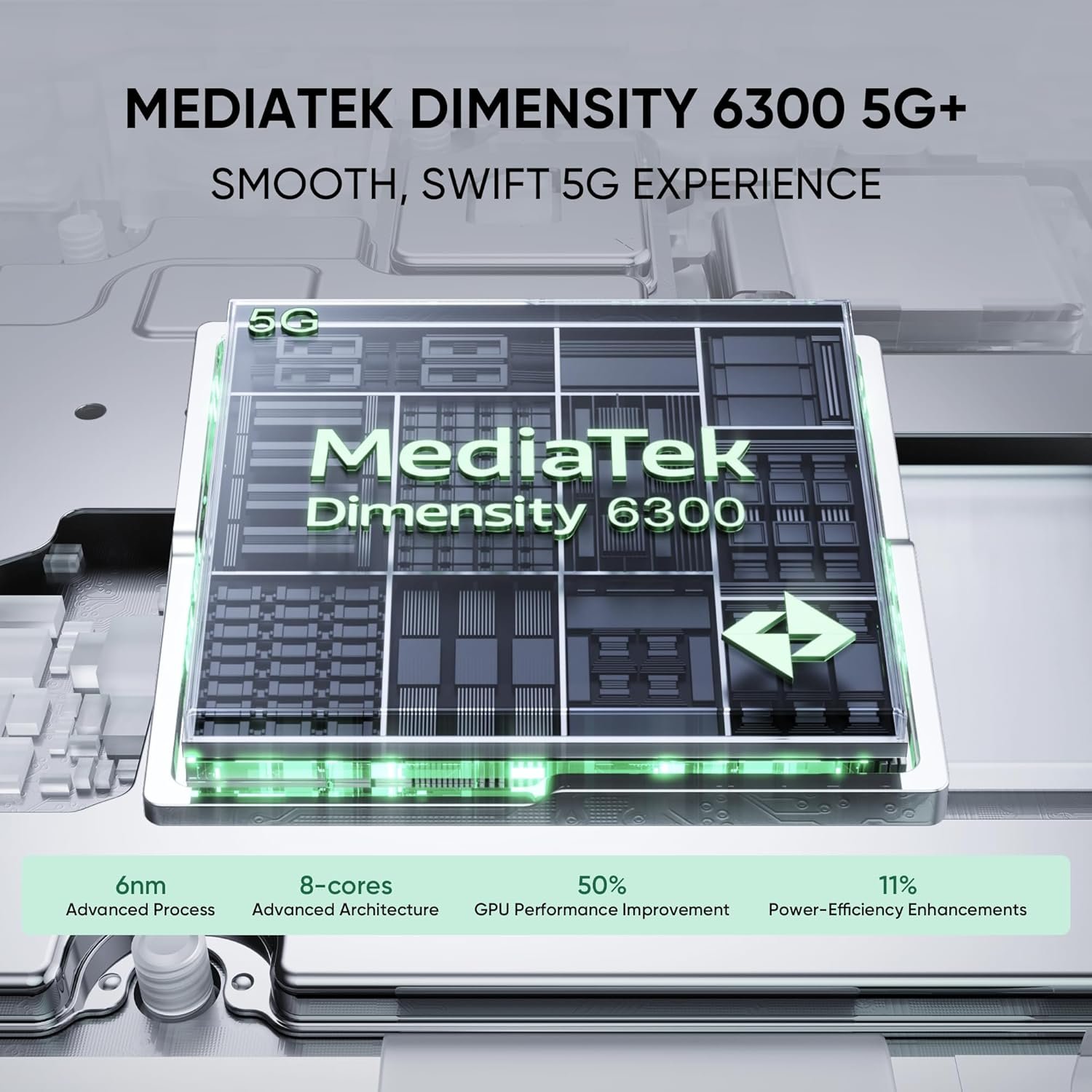 Rapid Performance: MediaTek Dimensity 6300 processor seamless multitasking, lag-free gaming, and smooth HD streaming, handling all tasks with efficiency.