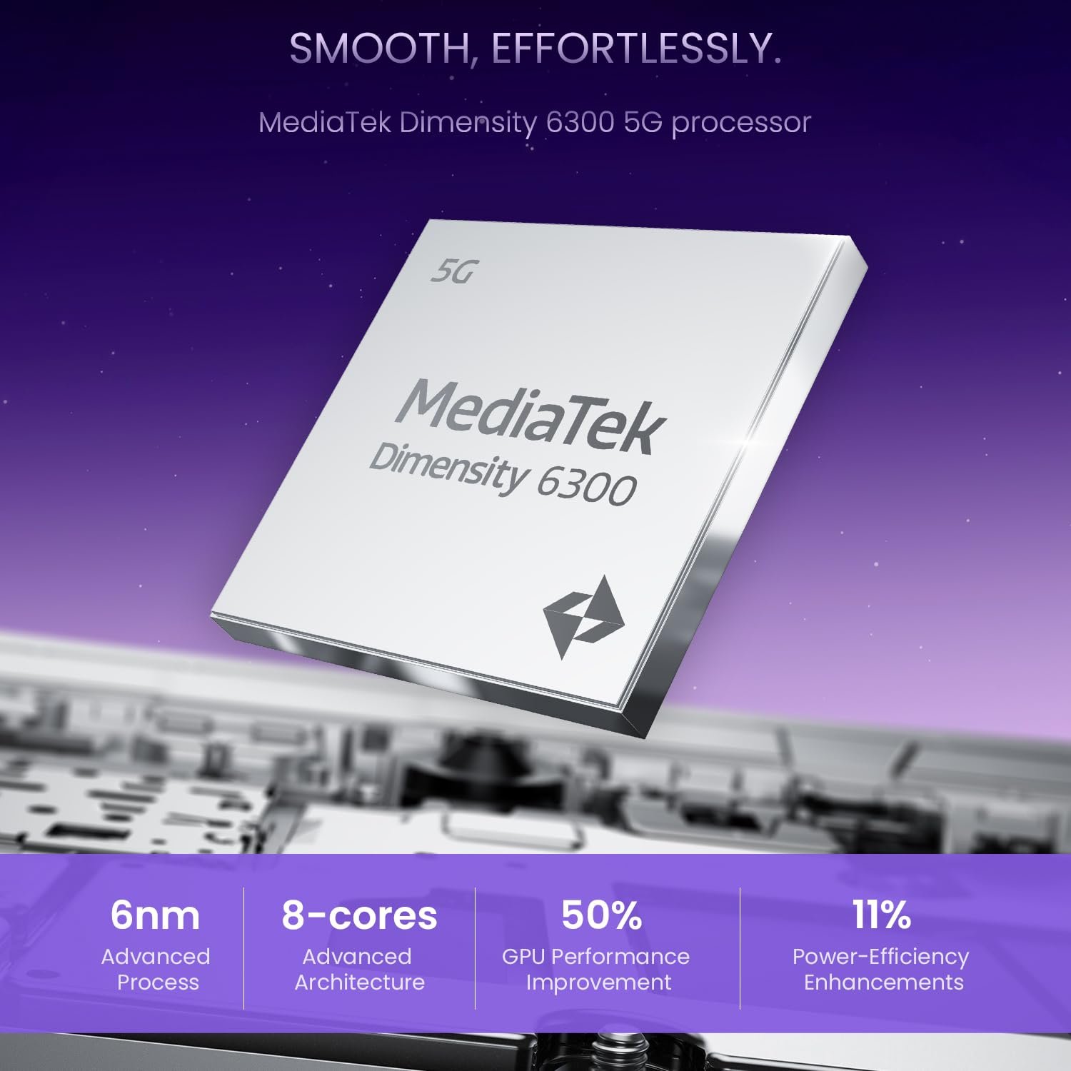 MediaTek Dimensity 6300:Lag – free performance, handles multitasking and apps with ease.