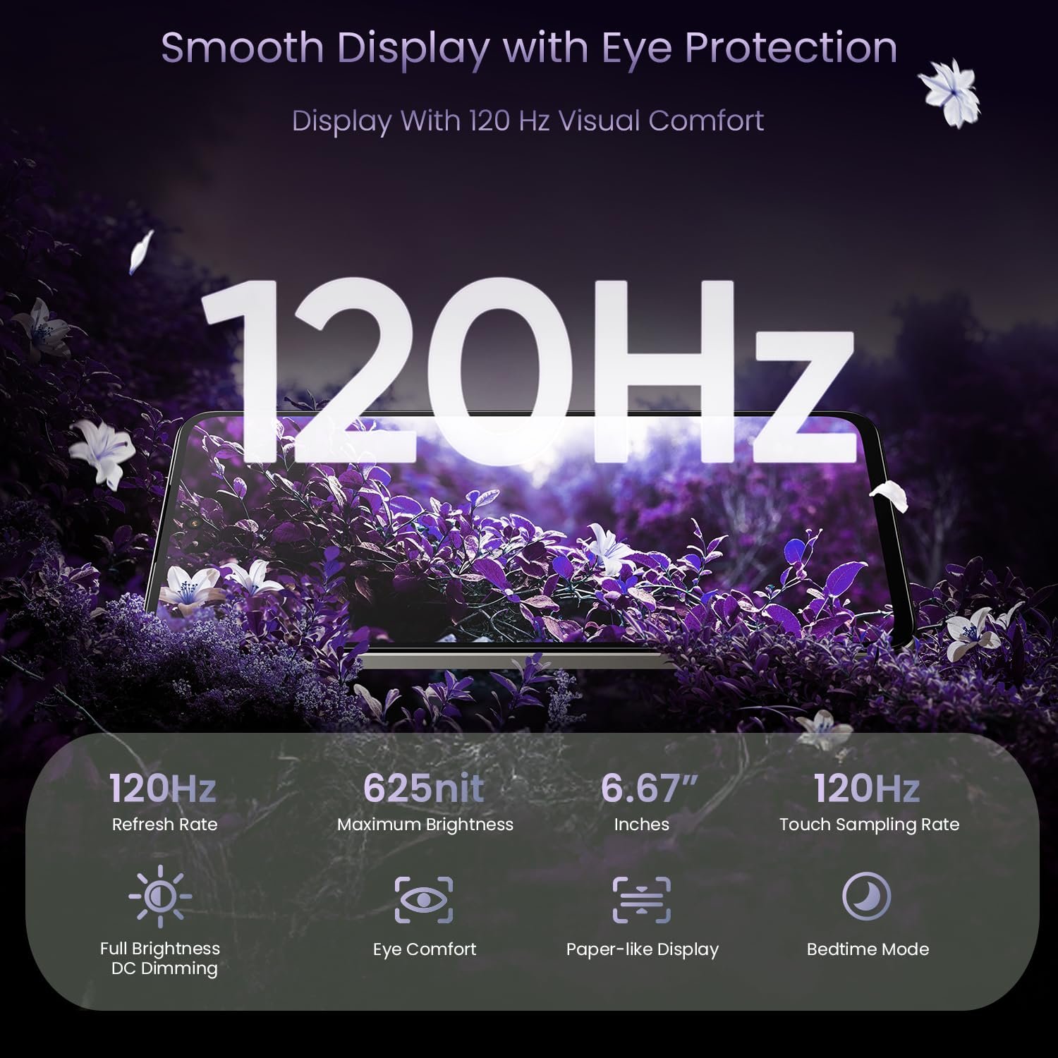 120Hz 6.67″ Display:Smooth visuals, 600nits brightness for clear outdoor viewing, perfect for gaming & streaming.
