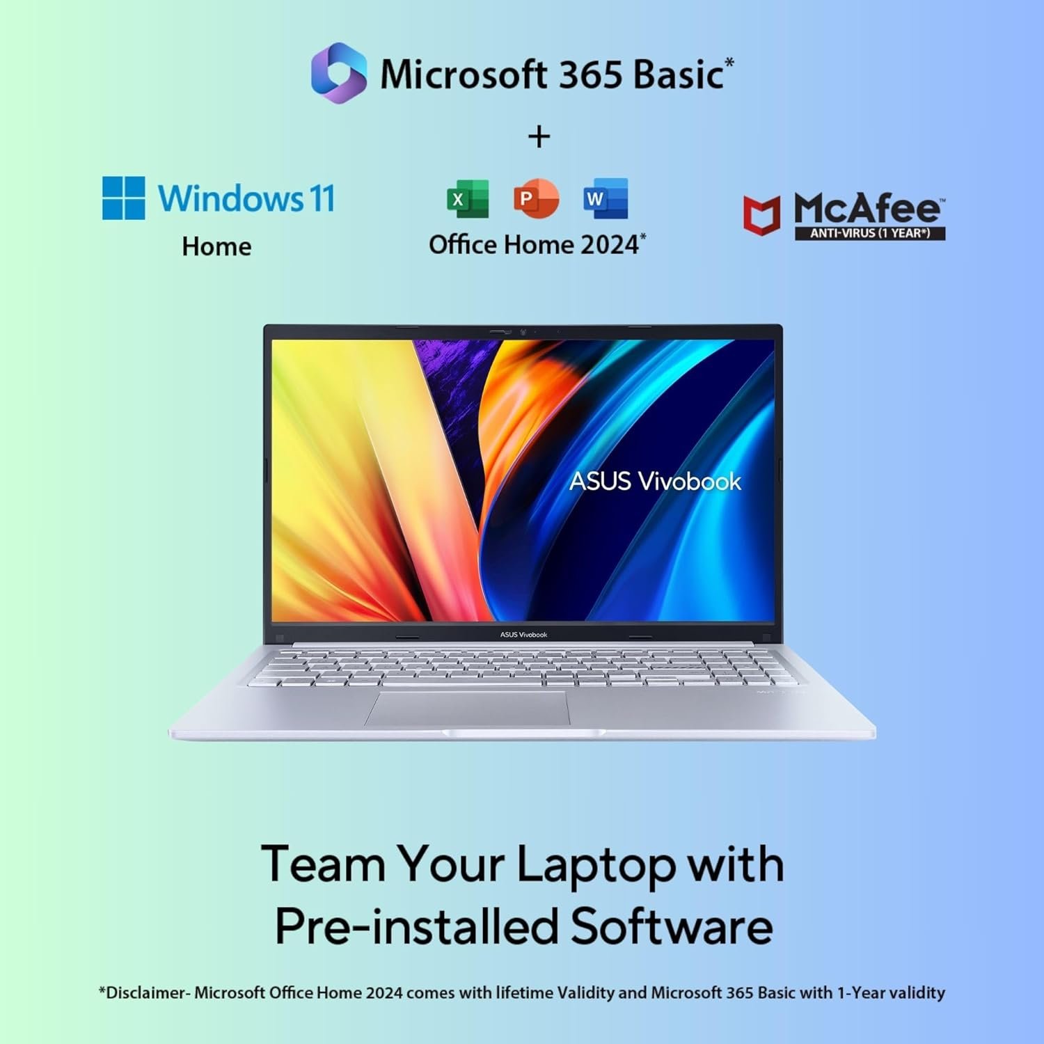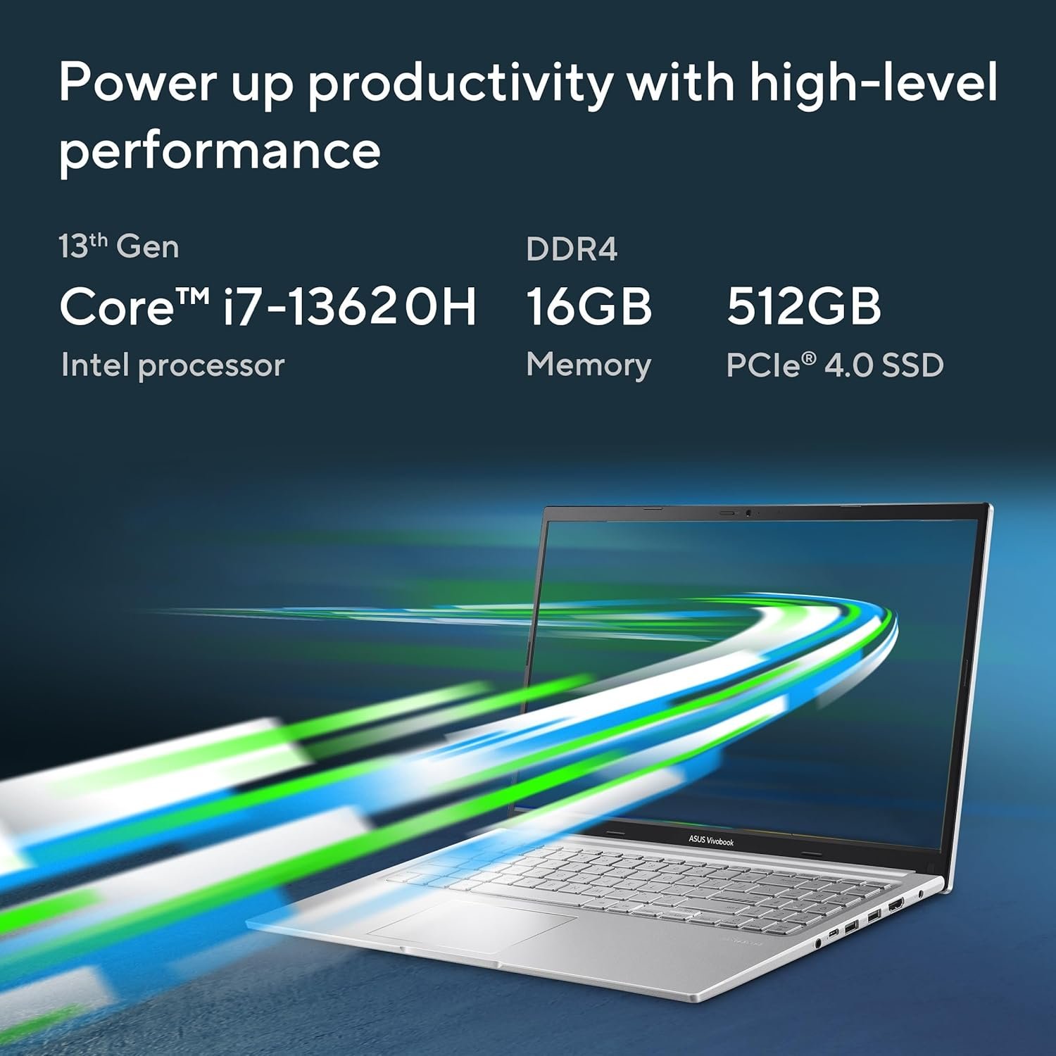 (Refurbished) ASUS Vivobook 15,13th Gen,Intel Core i7-13620H(Intel UHD iGPU/16GB RAM/512GB SSD/FHD/15.6″/60Hz/Backlit Keyboard/Windows 11/M365 Basic (1Year)*/Office Home 2024/Cool Silver/1.70 kg) X1502VA-BQ837WS