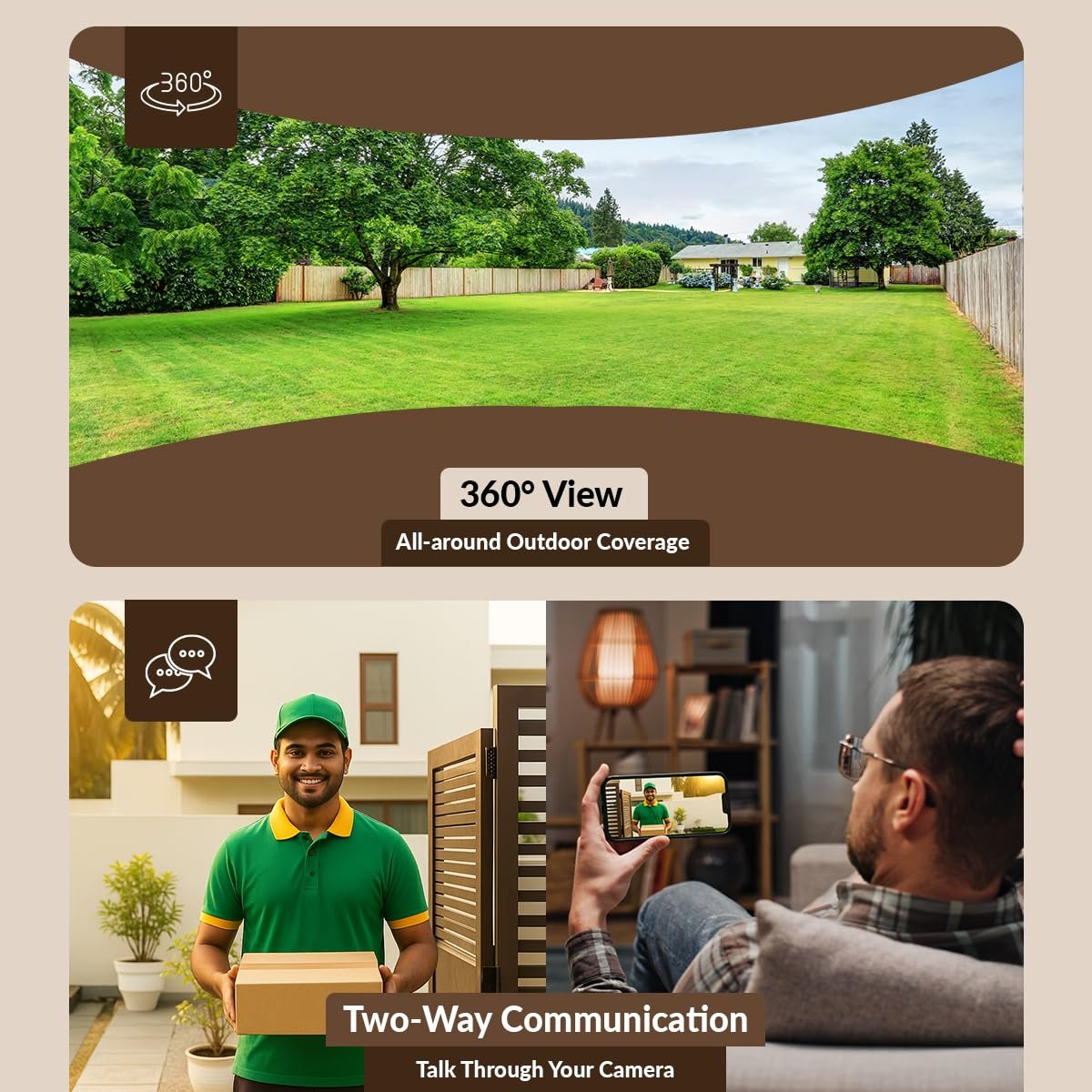 Pan & Tilt Outdoor Camera with 360° View – Covers wide outdoor zones by rotating across 360° to eliminate blind spots; reduces need for multiple cctv cameras for home outdoor.