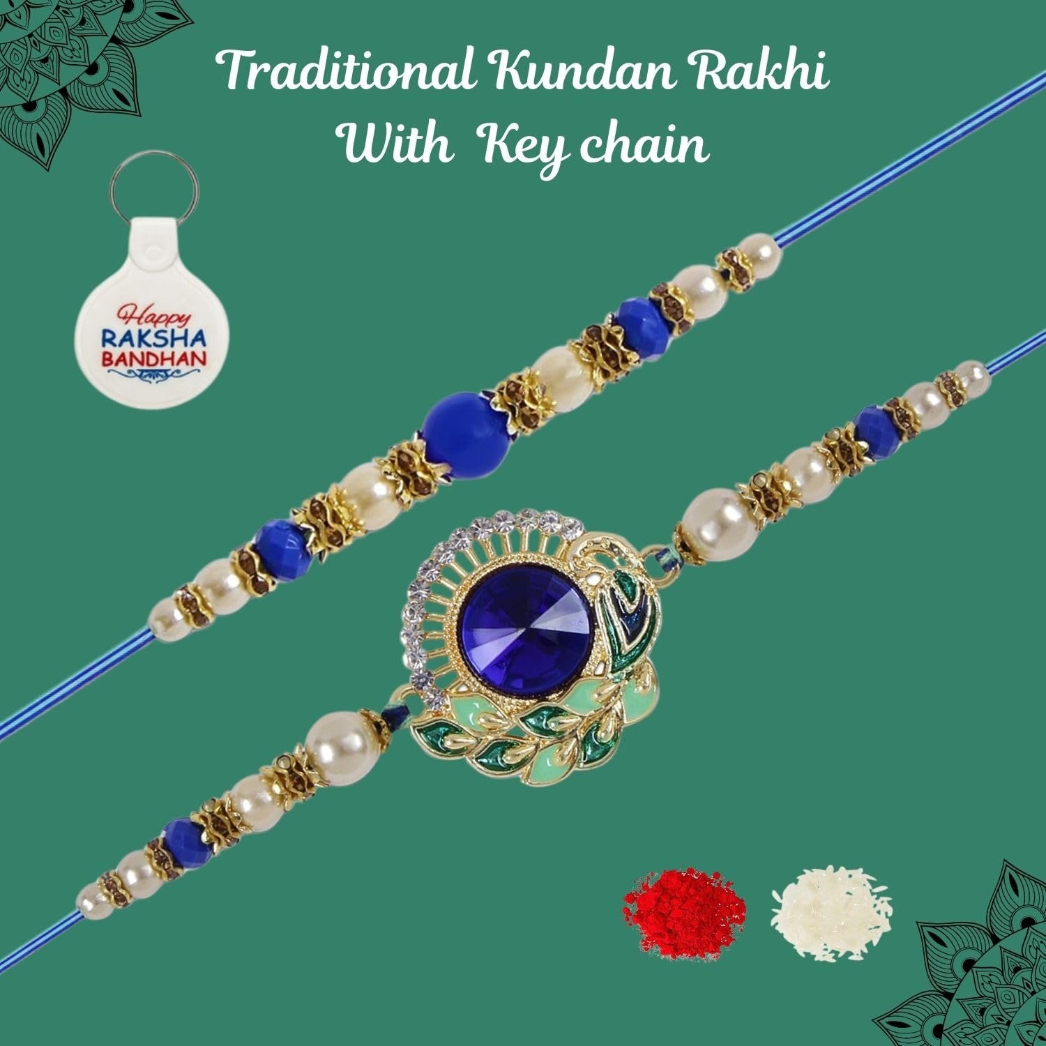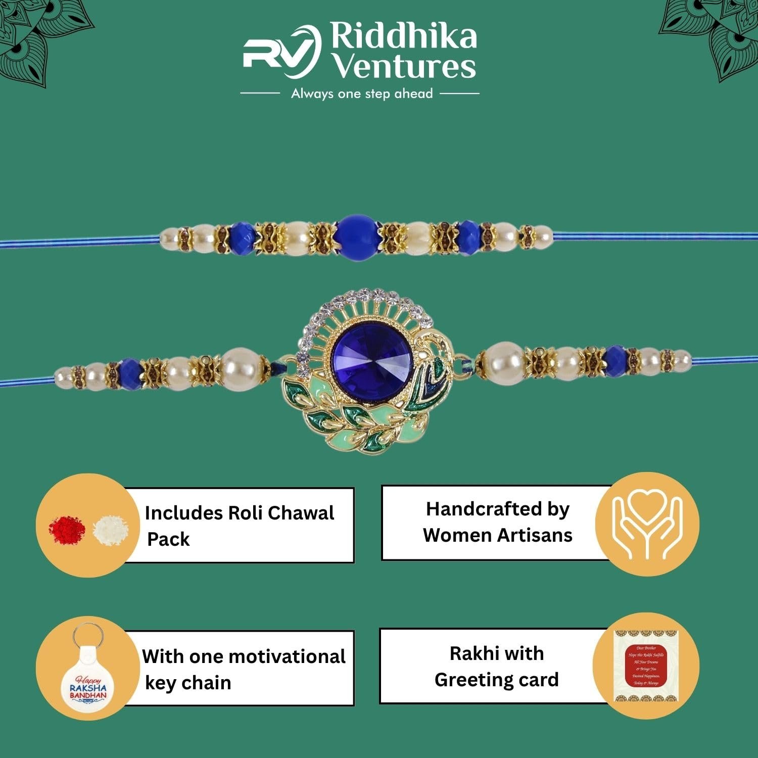 Riddhika Ventures Alluring Gold Plated Bhaiya, Bhabhi Rakhi Gifts (Set of 2) for Brother, Sister, Bhaiya, Bhabhi with Roli Chawal, Greeting Card and and One Motivational Keychain (K13P23)